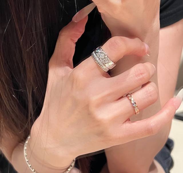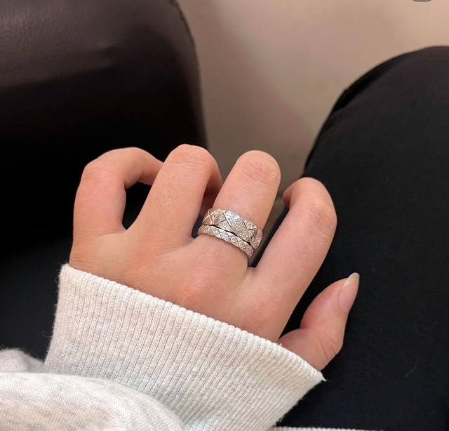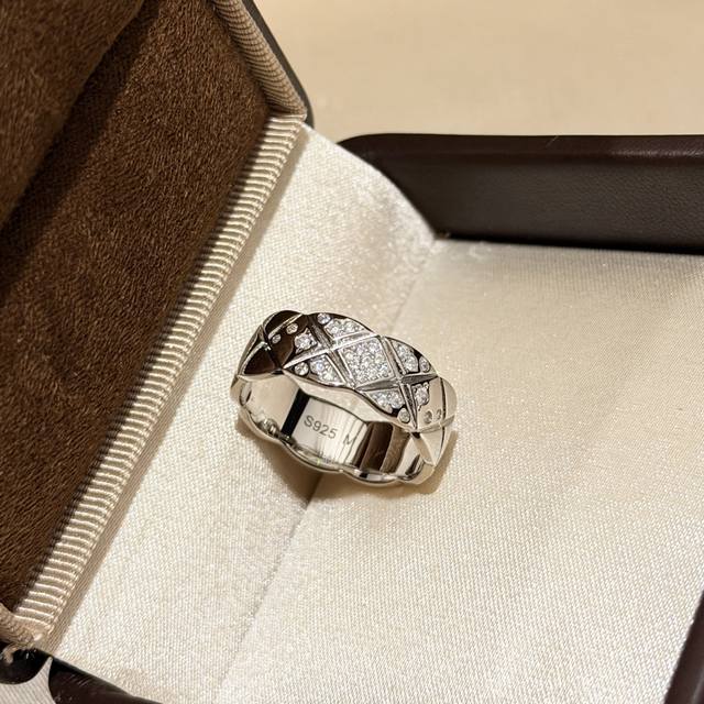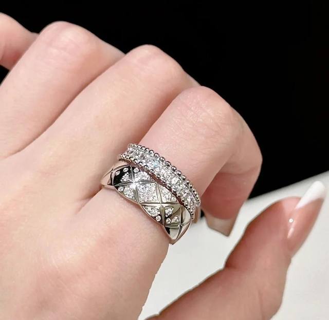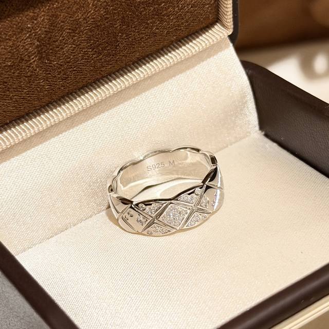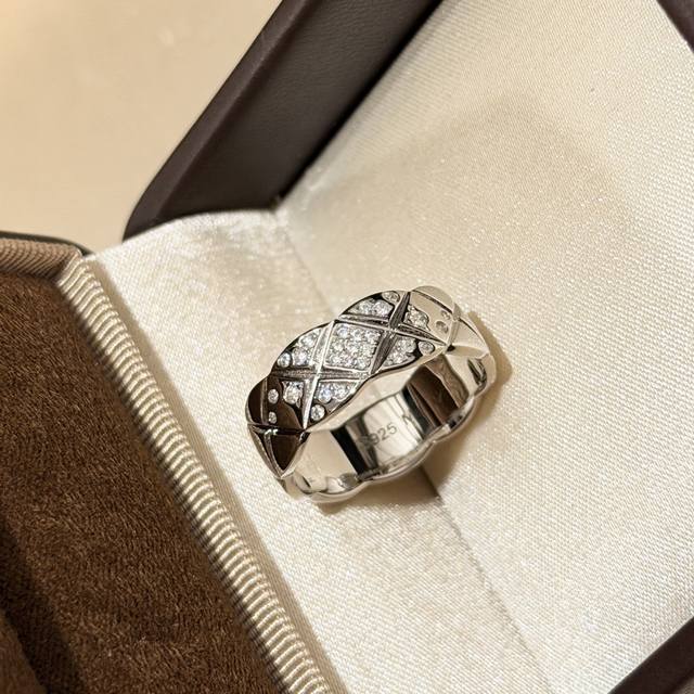 S0046 Chanel-style quilted half-diamond ring, high-end custom-made, 925 sterling silver, set with top-grade high-carbon diamonds. Real photos of high-end jewelry from Coco Crush! All-star lineup of Coco Crush new arrivals! Series of high-end jewelry rings, super stylish, sizes 6, 7, and 8 available, thick gold-plated sterling silver rings.