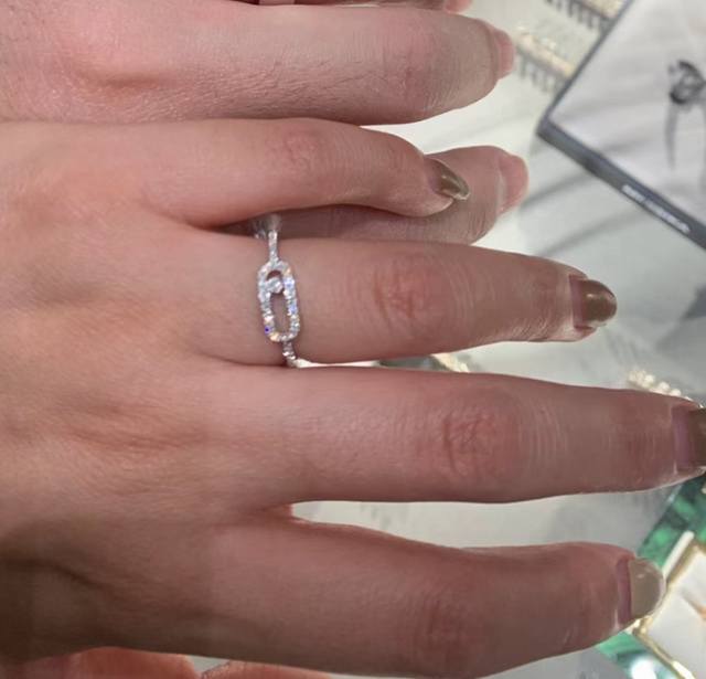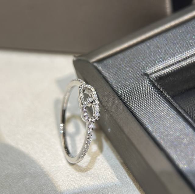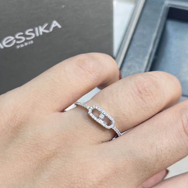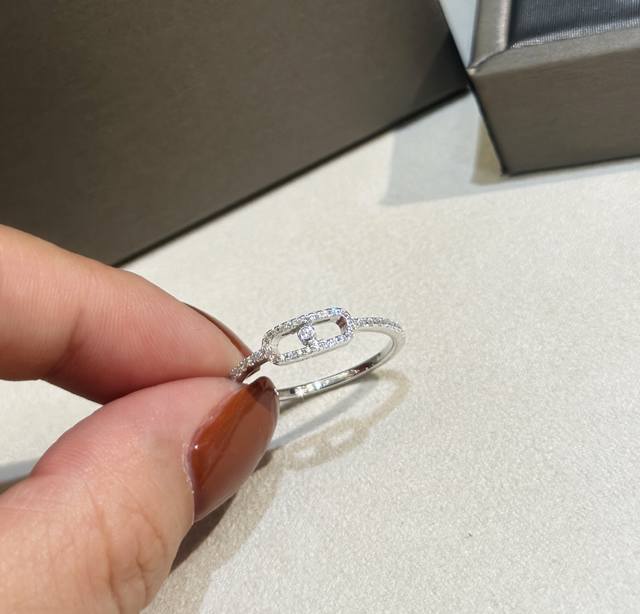 S0262 Messika New Single Diamond Sliding Diamond Ring, made of selected German imported S925 sterling silver with thick gold plating, superb craftsmanship, versatile summer minimalist style, platinum, sizes 6, 7, and 8 available, sterling silver ring.