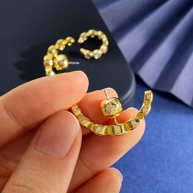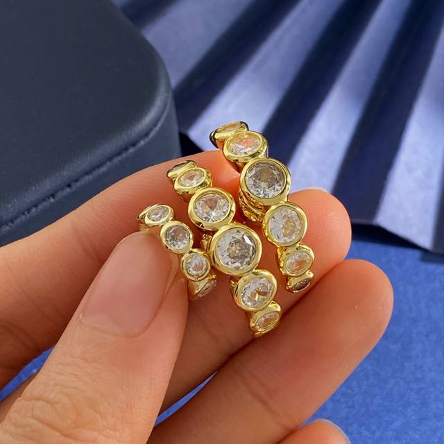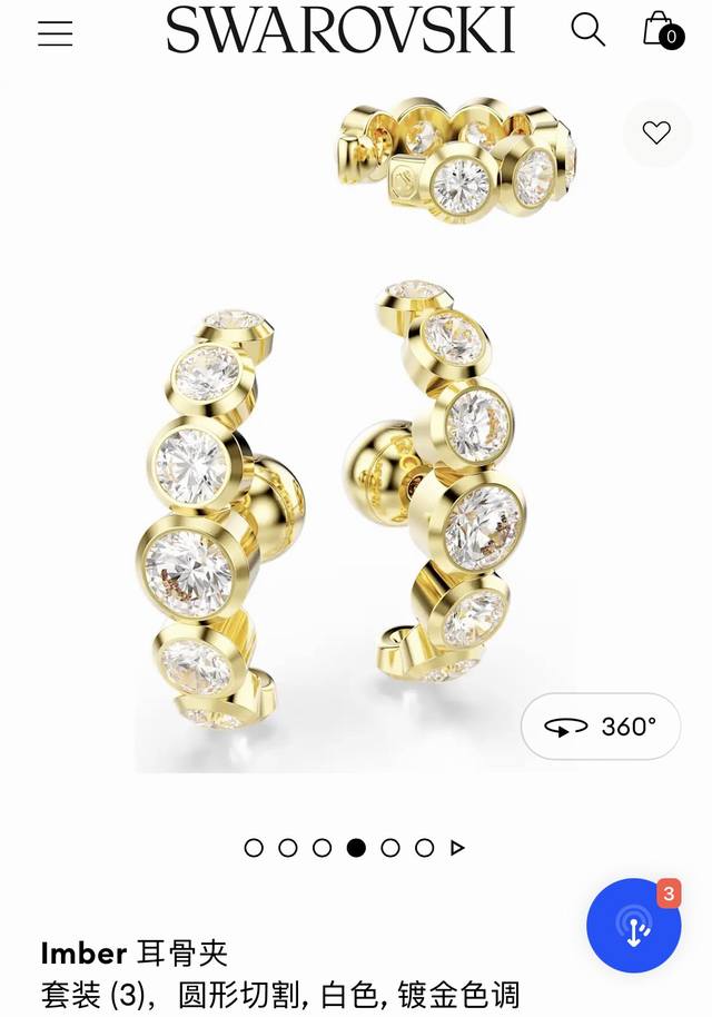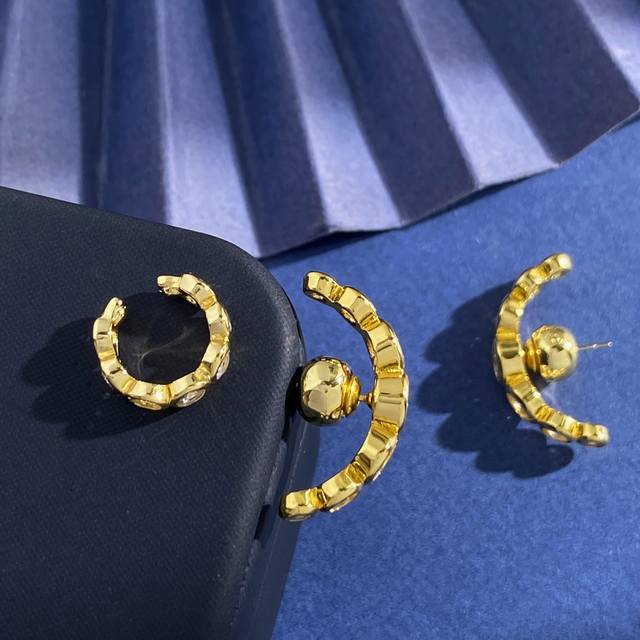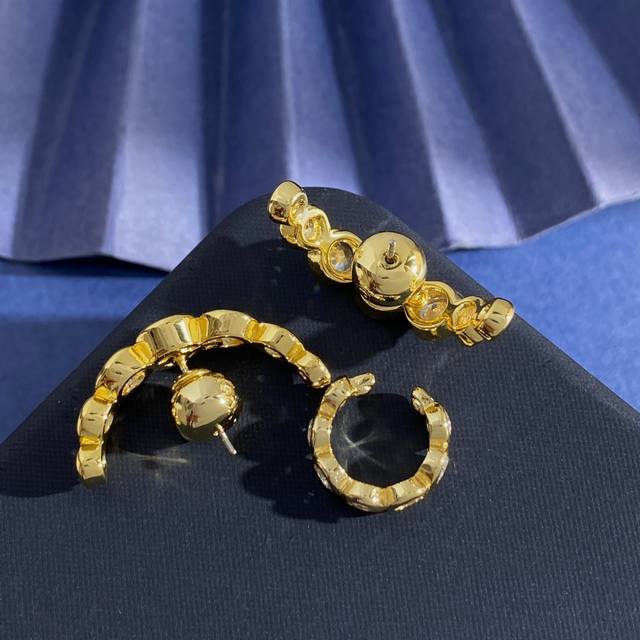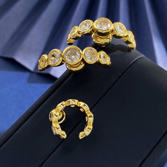 Swarovski stylish personality light luxury arc-shaped round diamond three-piece earrings ear bone clip brass material gold weight about 10.3G