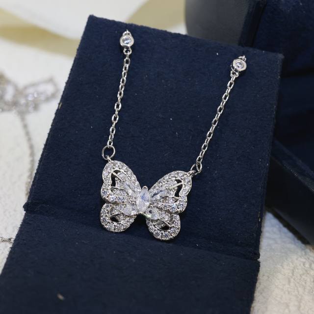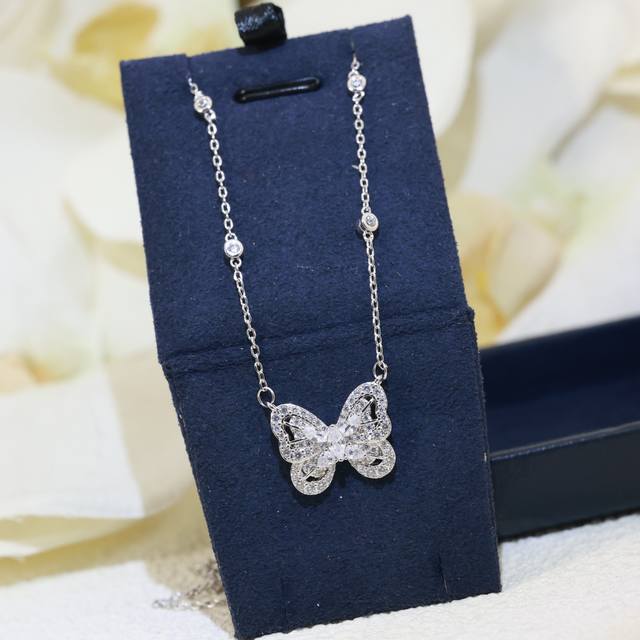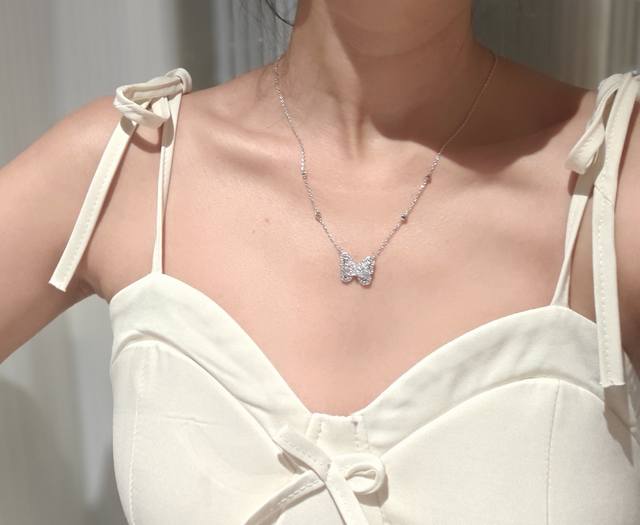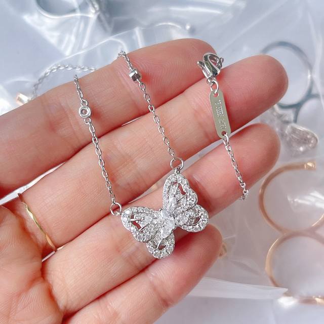Stunning De Beers new luxurious and elegant necklace, inlaid with Au750 18K gold and imported high-carbon diamonds, a gorgeous masterpiece! A must-have for celebrities! De Beers logo butterfly necklace