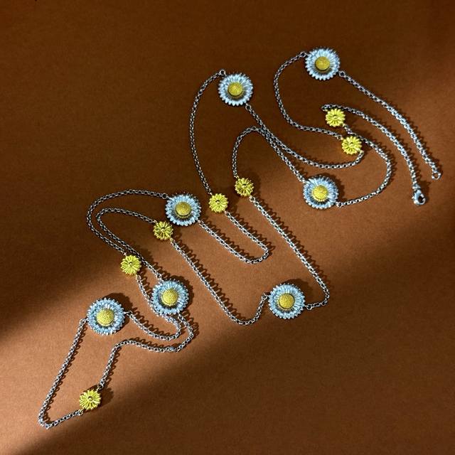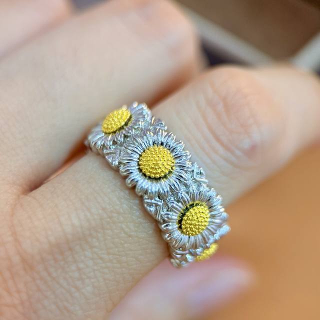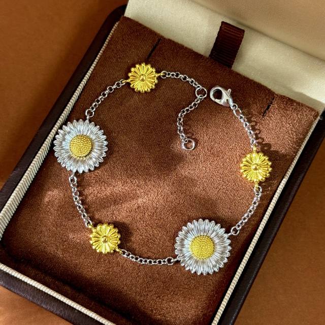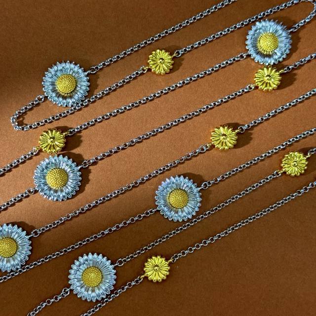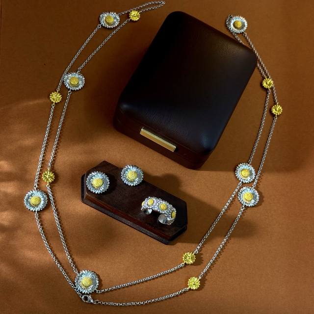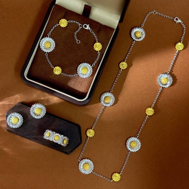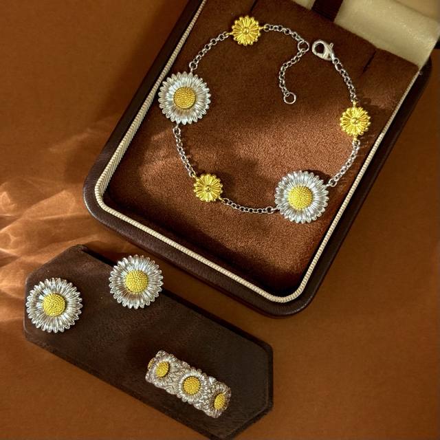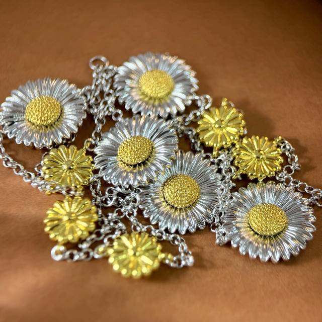 No label Buccellati style retro high-end convex three-dimensional gold and silver contrasting pastoral style daisy flower ring earrings bracelet long necklace sweater chain set brass material