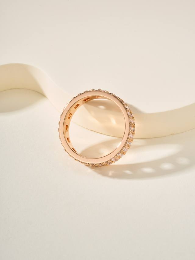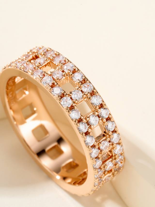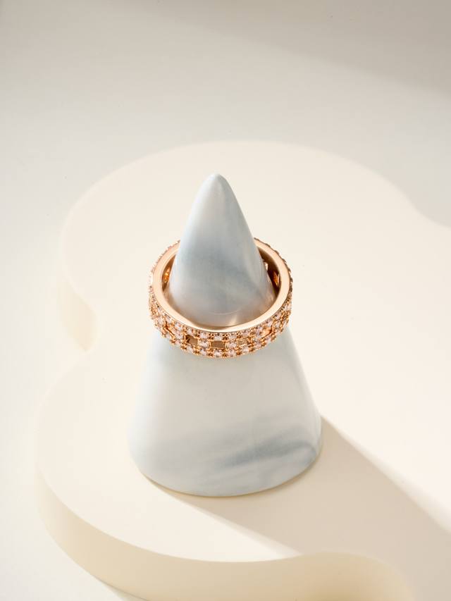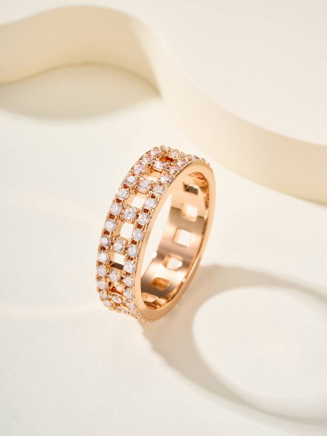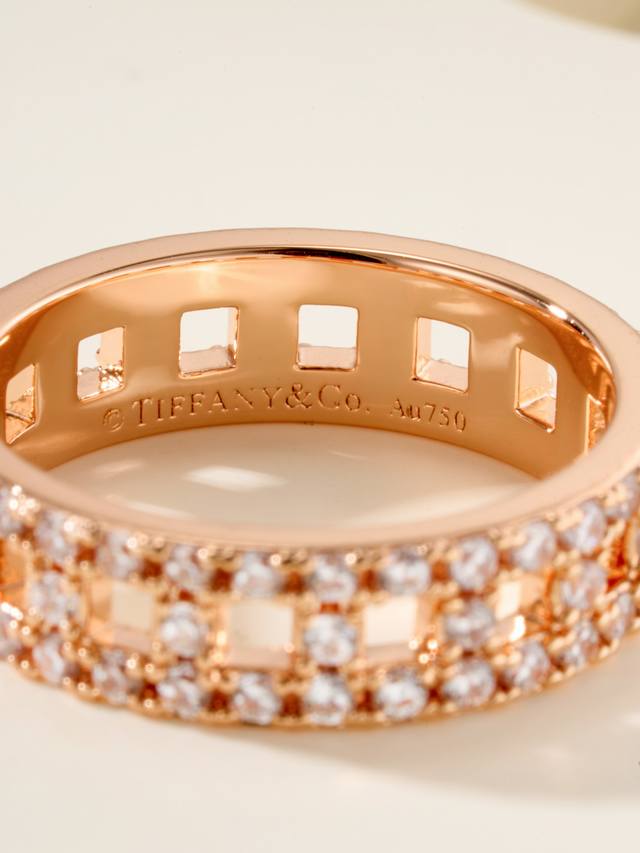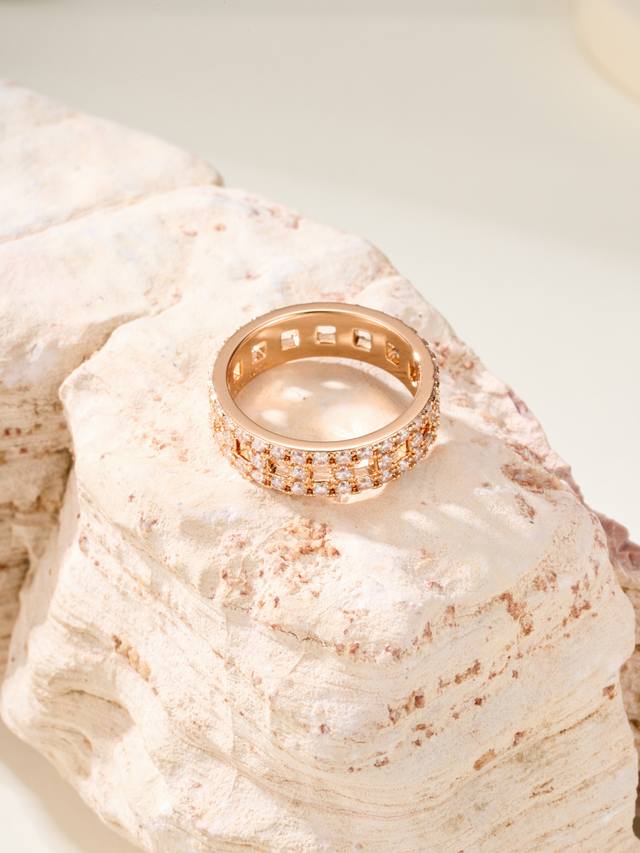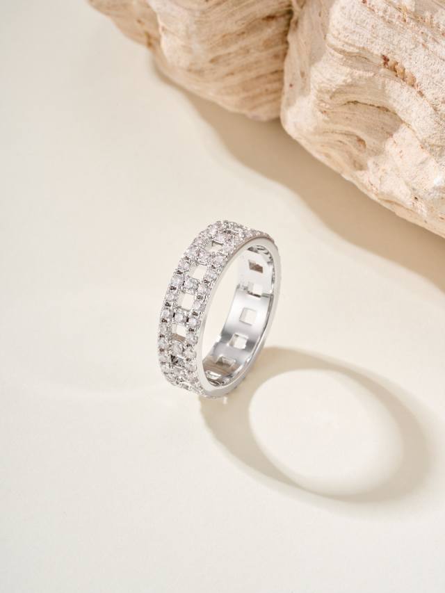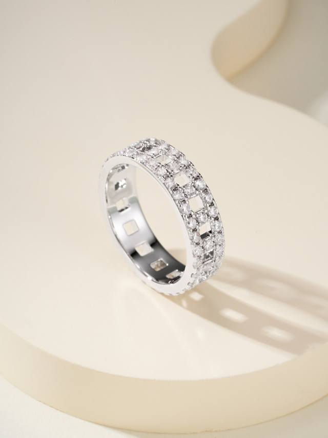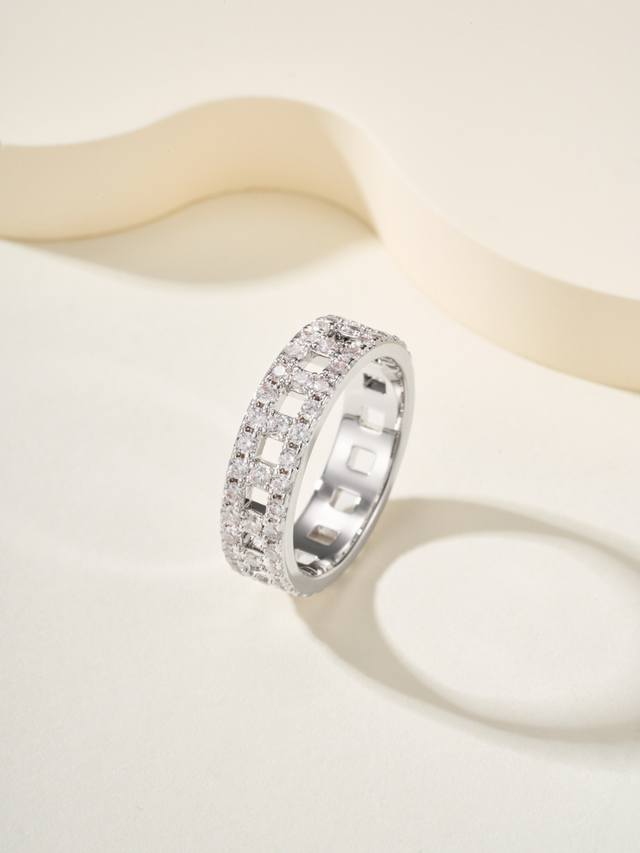 ). A bling-bling full diamond ring with a T-shaped openwork design, giving it a very modern and cool unisex feel. Several geometric T-shaped rings are interlocked, symbolizing the unbreakable bond of love. The metallic sheen is stunning. T True represents purity, true love, cherishing each other, and staying true to our original intentions. (