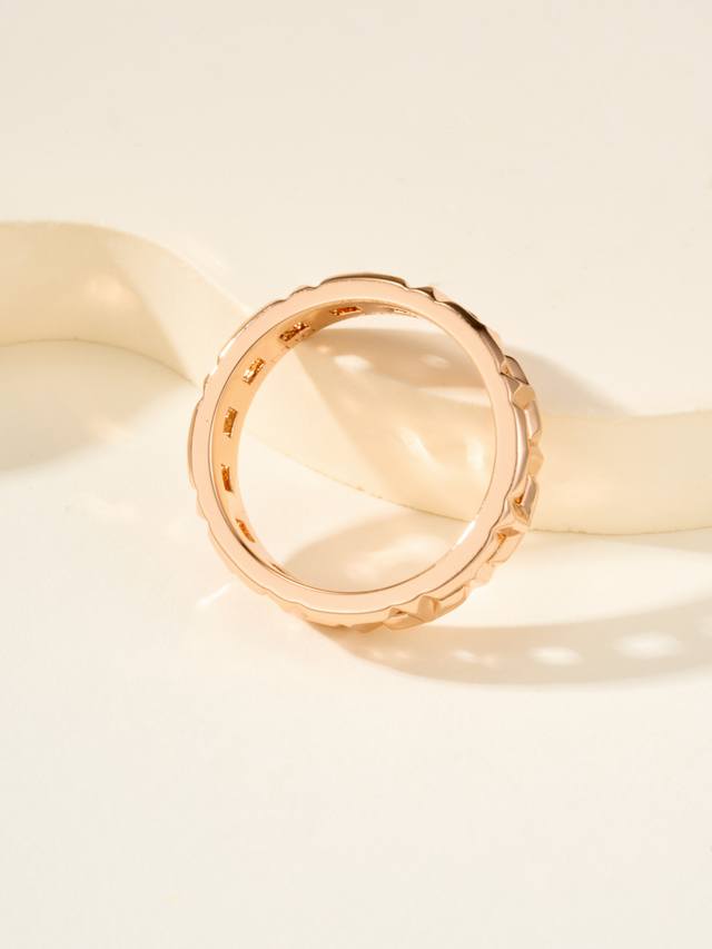 T True series ring, US$6789. Men will admire T True, a ring that sparkles even without diamonds. The ring features a circle of T-cuts, creating a modern, cool, androgynous design. Several interlocking geometric Ts symbolize the inseparable bond of love. The metallic sheen evokes a play of light and shadow. T True represents innocence, true love, cherishing each other, and remaining true to one's roots. Available in narrow and wide versions, this is the 5.5mm wide version. Available in three colors: white gold, yellow gold, and rose gold.