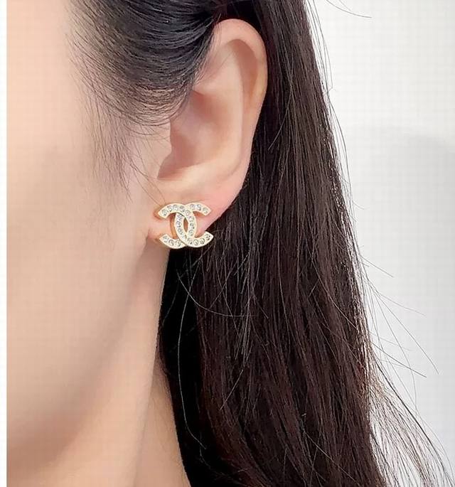 The latest model of full diamond double C earrings