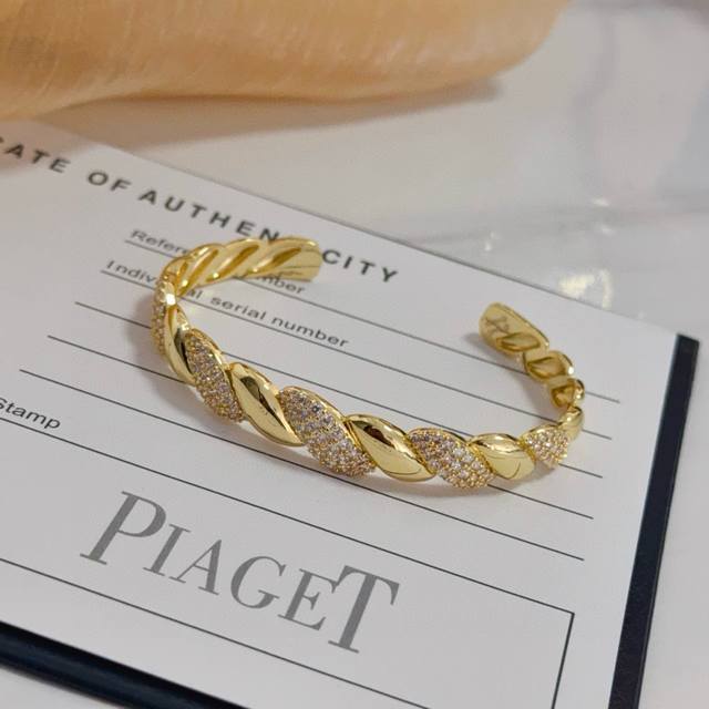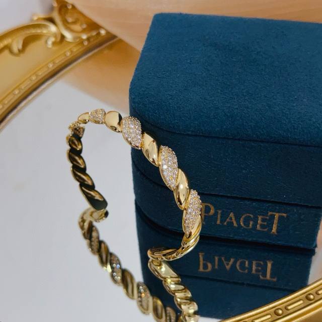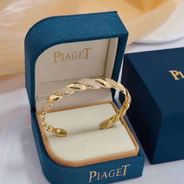 This Piaget bracelet is a high-end custom version featuring diamond setting craftsmanship and V-gold, exuding luxury in every detail. The metallic texture and grain complement each other, shimmering brilliantly under the light, embodying a luxurious and elegant temperament. Whether for a business occasion or a sweet date, it highlights sophistication and elegance. It looks absolutely stunning on the wrist and is definitely your dream bracelet.