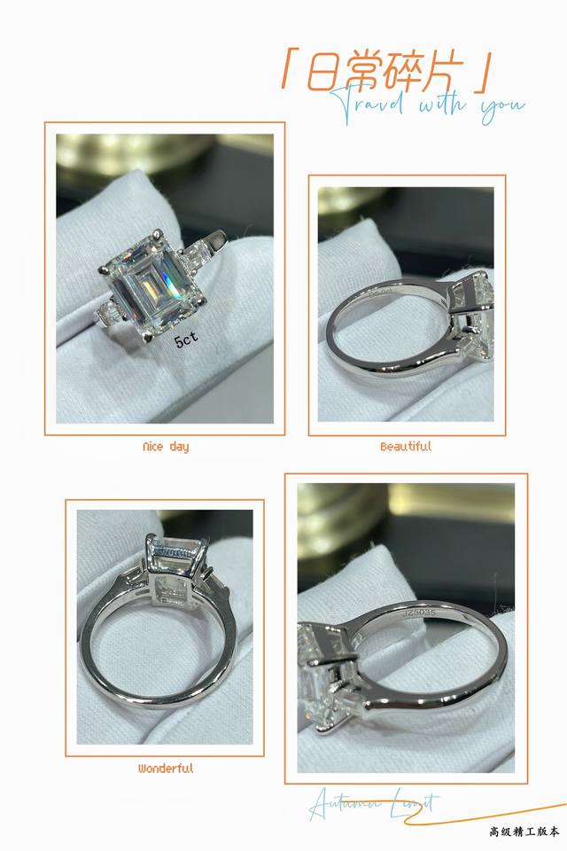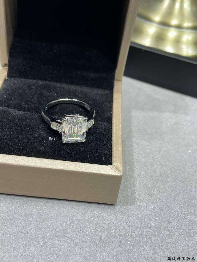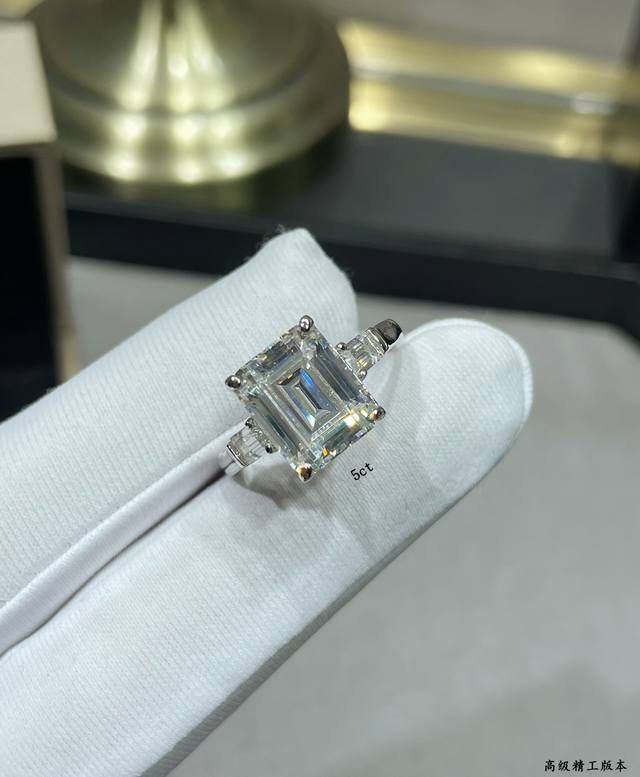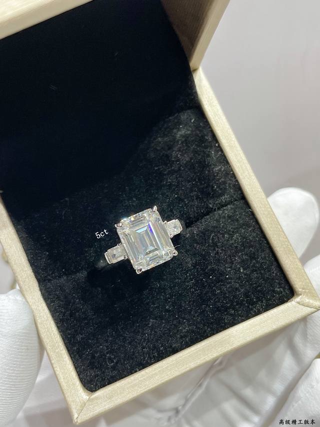 This price adjustment color gemstone: 925, the most refined market price, 5 carat rectangular trapezoidal ring, size: 5678. Lifelike, exquisitely cut, high-end custom 925 sterling silver inlaid with high-carbon diamonds, Bling Bling elegant design, luxurious and noble, comfortable and beautiful to wear.