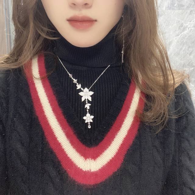 TianApm New Long Flower Silver Necklace for Women, Sweater Chain, Autumn/Winter New Year Gift. DDD
