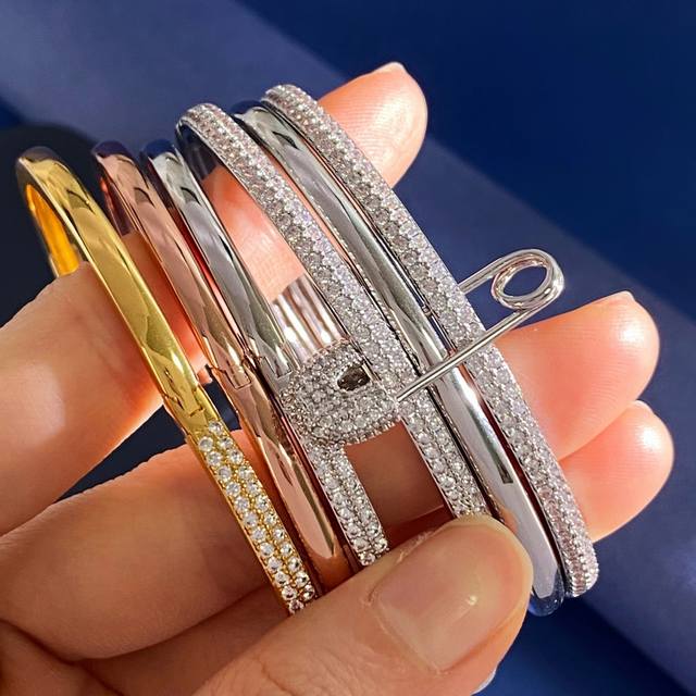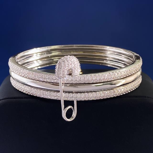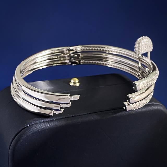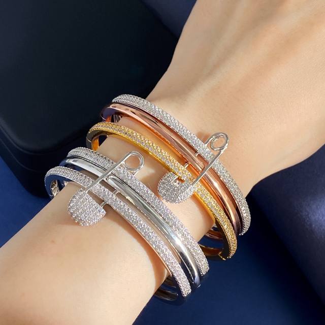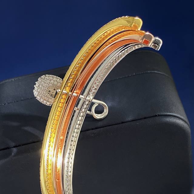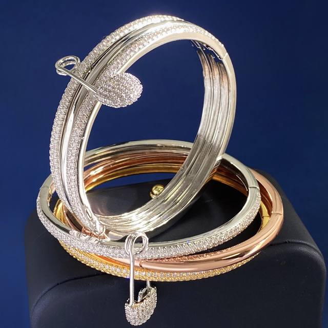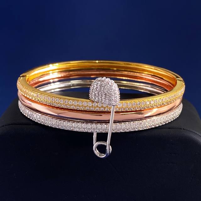 Unmarked Apm Style European and American Fashionable and Exquisite Tricolor Tri-ring Diamond-set Brooch Bangle, Brass Material, Weight Approx. 38.3g, 2 Colors: Silver, Tricolor Design DDD, Inner Diameter Approx. 6cm * 5cm, Face Width Approx. 1.2cm DDD