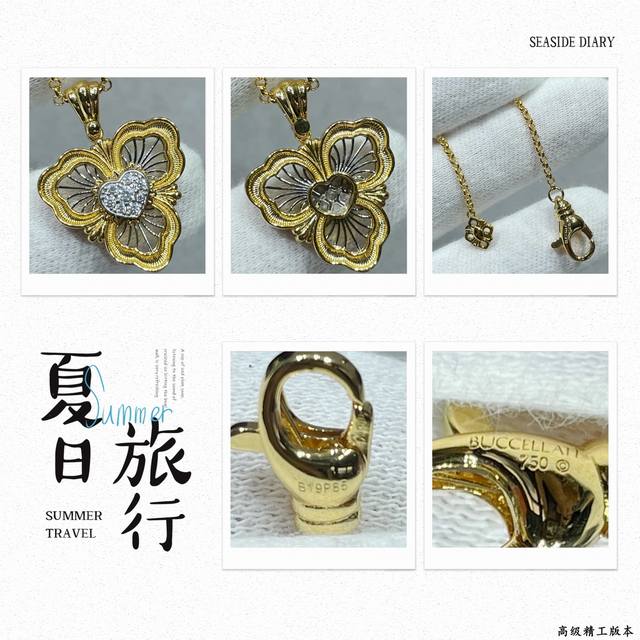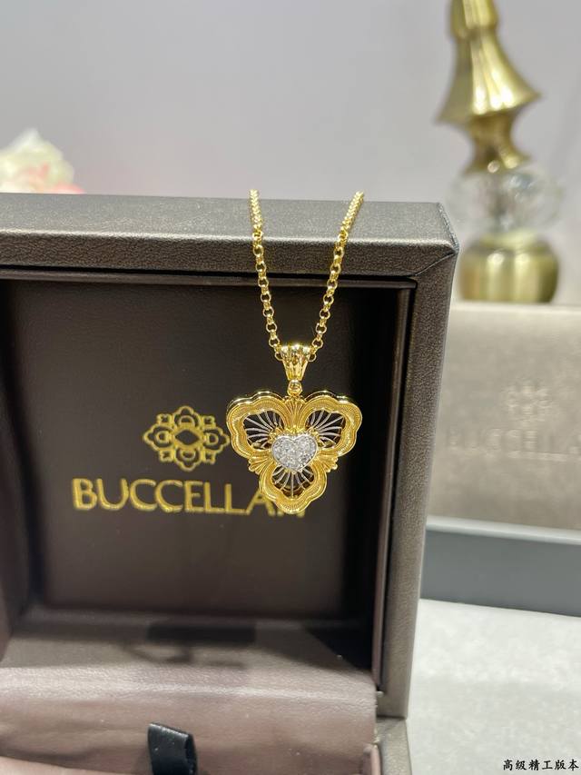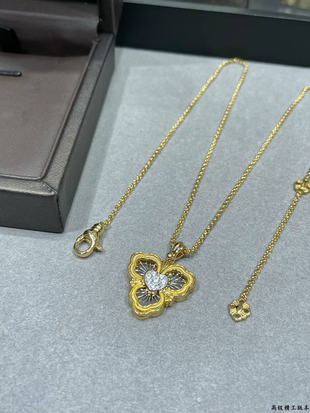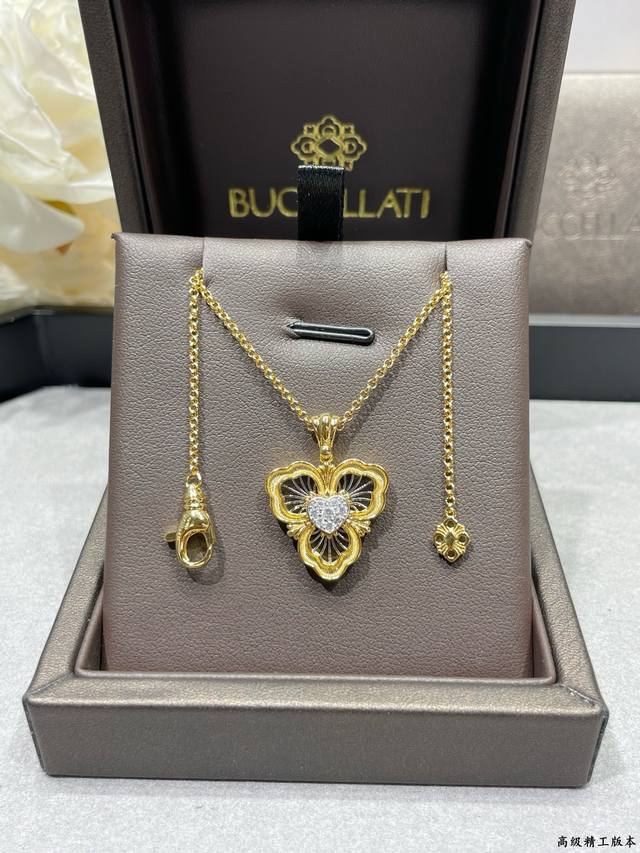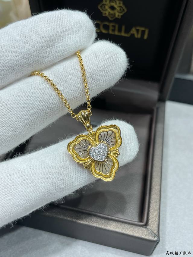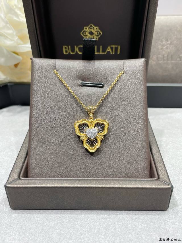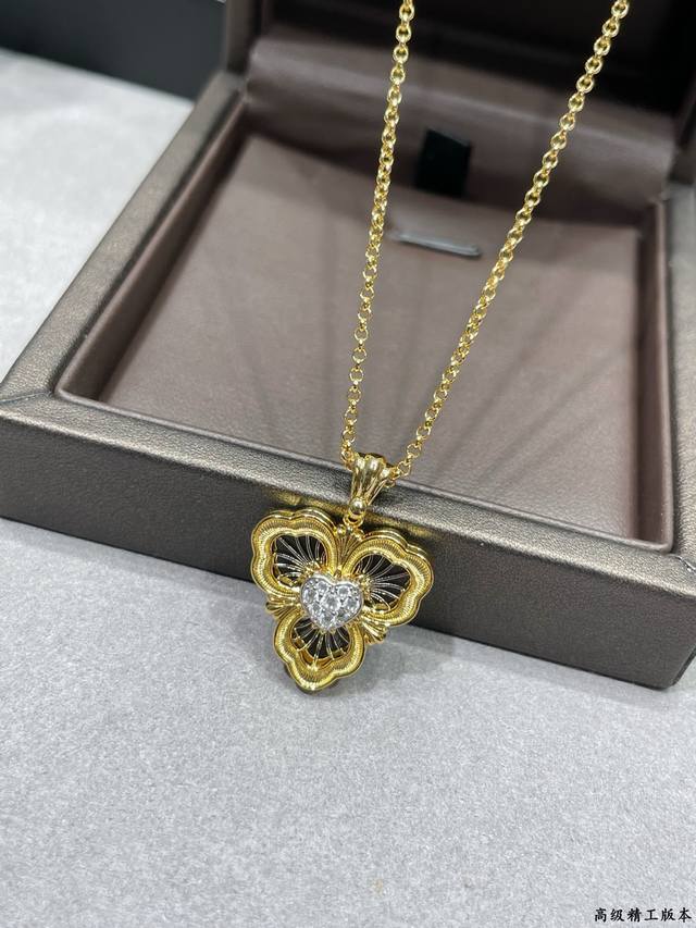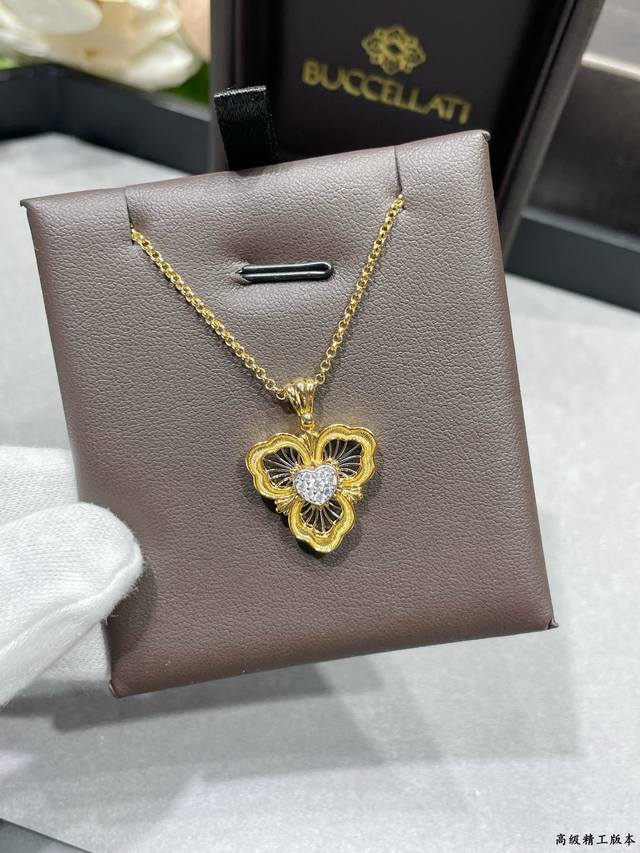 V Gold Buccellati Opera Hollow Series Heart Three-Leaf Necklace, Retro Palace Style Clover Three-Petal Peach Blossom Hollow Heart Diamond Necklace, Very Italian Style, The Whole Work Is Exquisite and Gorgeous While Adding a Feel of Art, Using Rigato Parallel Grain Carving Technique to Create a Unique Satin Craft, Geometric Rhombus Carving Inlaid with Sparkling Diamonds, It Exudes a High-End Temperament from the Inside Out
