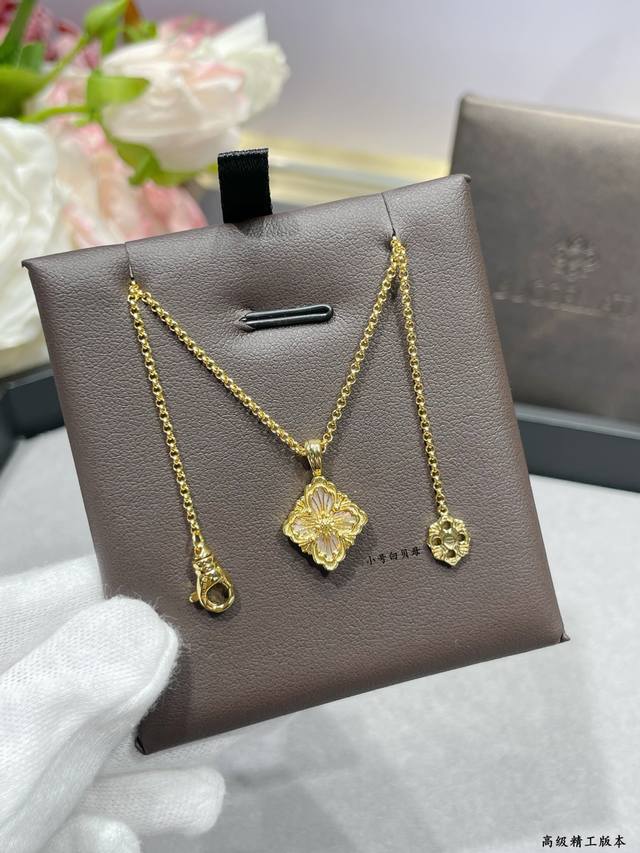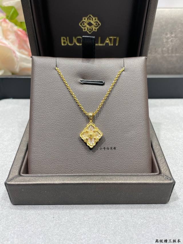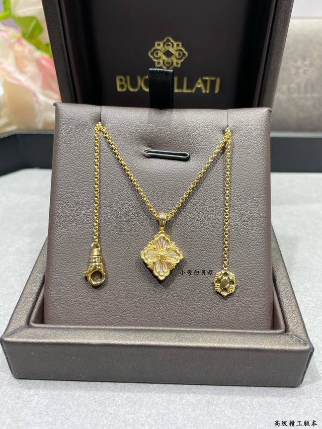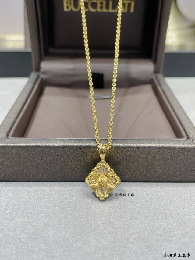 V Gold Buccellati Small Opera House Series White Mother-of-Pearl Necklace, Retro Palace Style Four-Leaf Clover, Four-Petal Flower Shell Double-Sided Necklace, Too Italian Style, The Whole Work Is Exquisite and Gorgeous While Adding a Feel of Art, Using Rigato Parallel Grain Carving Technique to Create a Unique Satin Craft, The Geometric Rhombus Exudes a High-End Temperament from the Inside Out