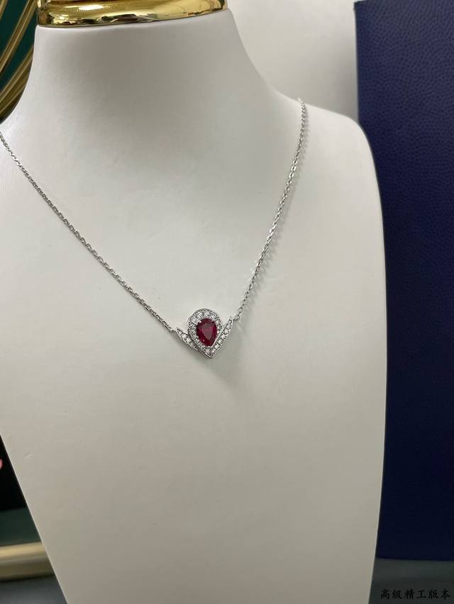 V Gold Chaumet Red Diamond Teardrop Necklace, a perfect match for you, engraved with our love, uniquely tailored. High-end custom micro-inlay craftsmanship promises to win your heart and stay together forever. Perfect for lovers seeking a personal touch, looking for a witness to your love.