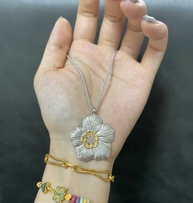 / V Gold Fabric Cirati Gardenia Necklace Ddd