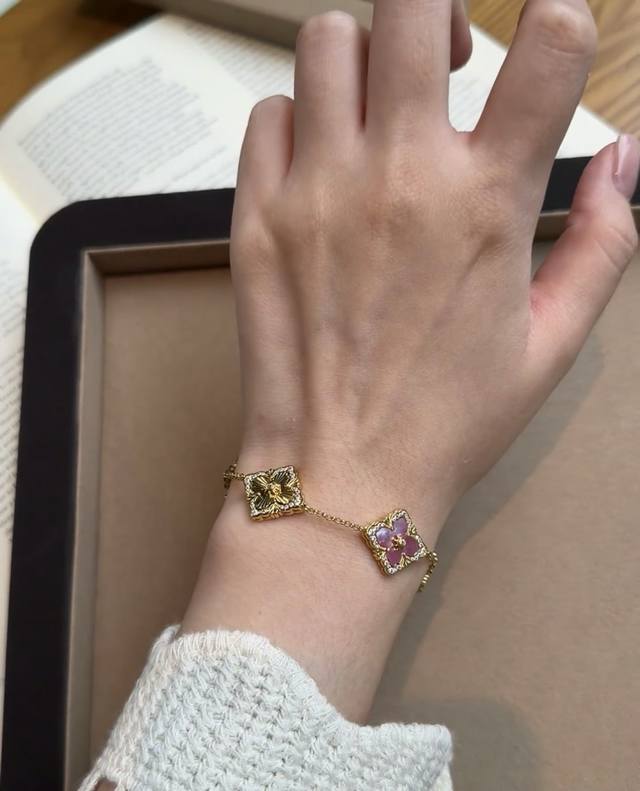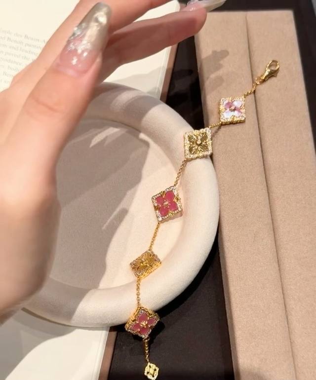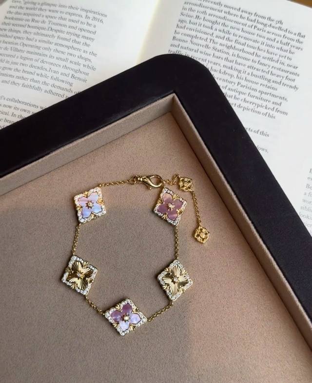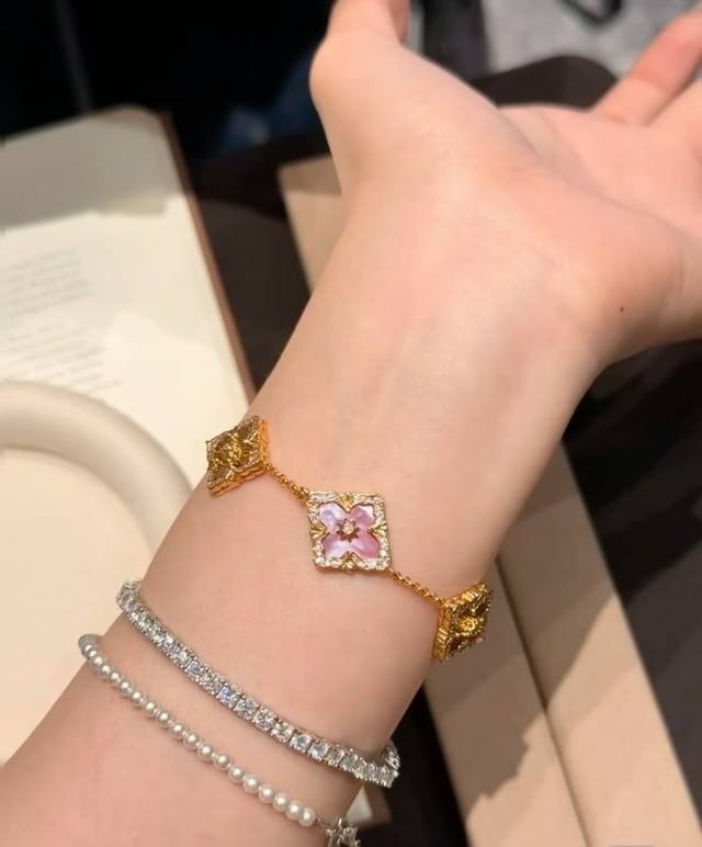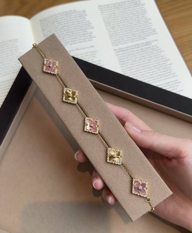 V Gold Material Buccellati Pink Mother-of-Pearl Laser-Set Diamond Five-Flower Bracelet