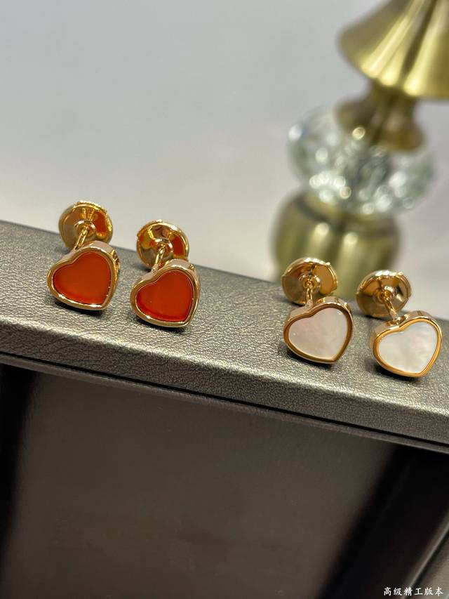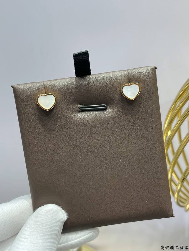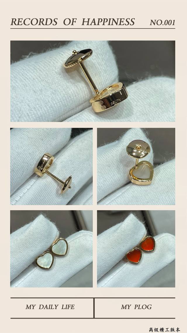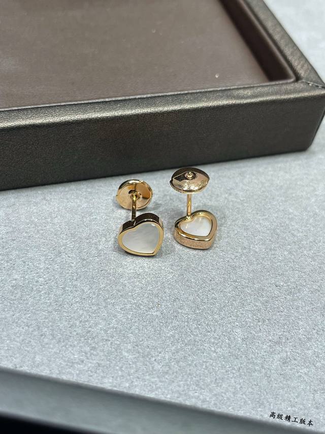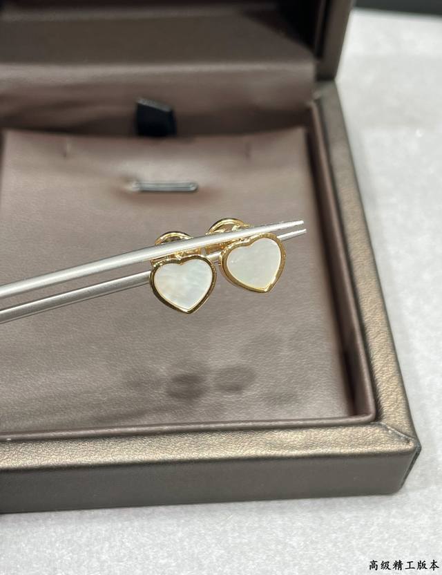 V gold material, Chopard heart-shaped shell earrings, in stock My love is hidden in my heart but expressed in my expression High-quality K-gold craftsmanship Seconds to sell the highest price-performance ratio on the entire network Hot sale The color is great, embellished with sparkling zircon comparable to K-gold texture Fashionable and noble temperament
