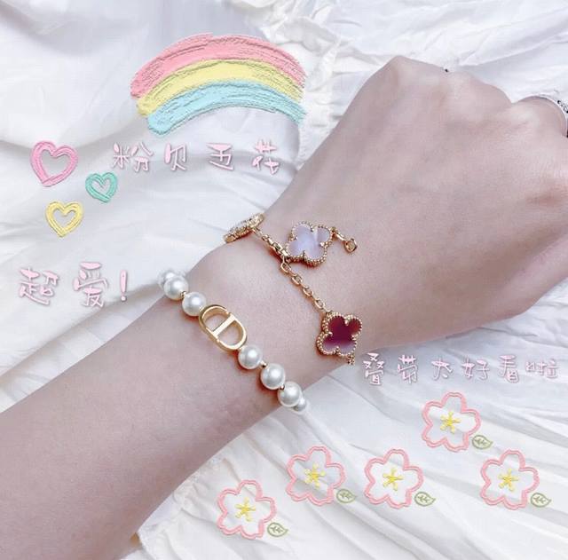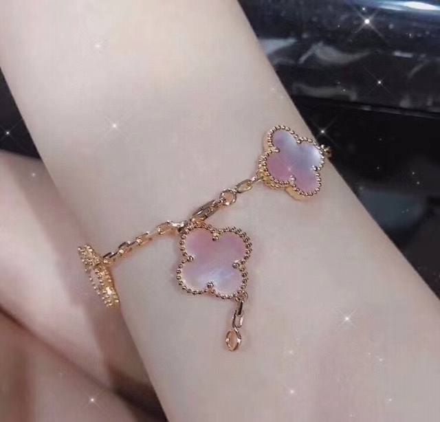 V Gold material is rare and expensive. Natural pink shells have finally arrived. It's so beautiful! Van Cleef & Arpels Vca's latest high-quality four-leaf clover pink shell five-flower bracelet is high-end custom made with natural pink shell inlays, which has a high-end feel! The texture is superb, with an original diamond clasp, seamless inlays, rounded and full bead edges, and superb craftsmanship! Rose gold