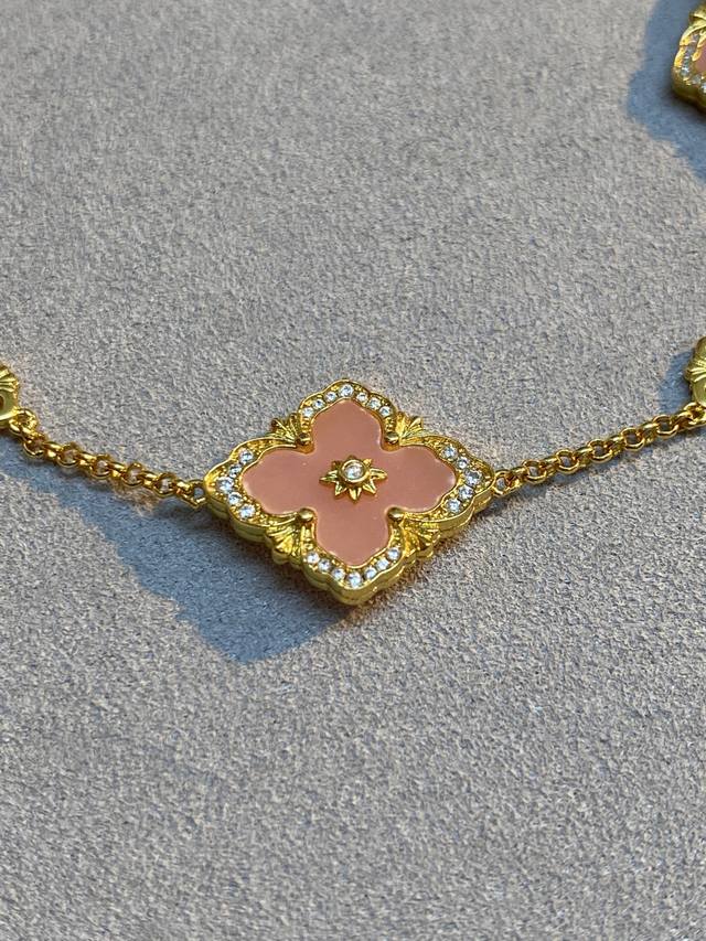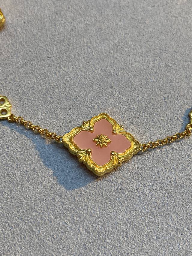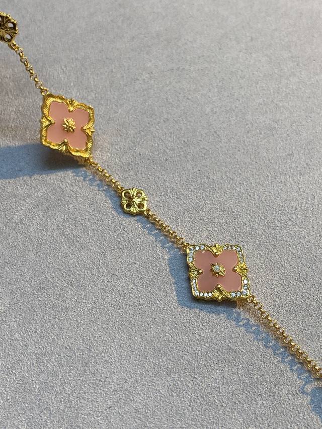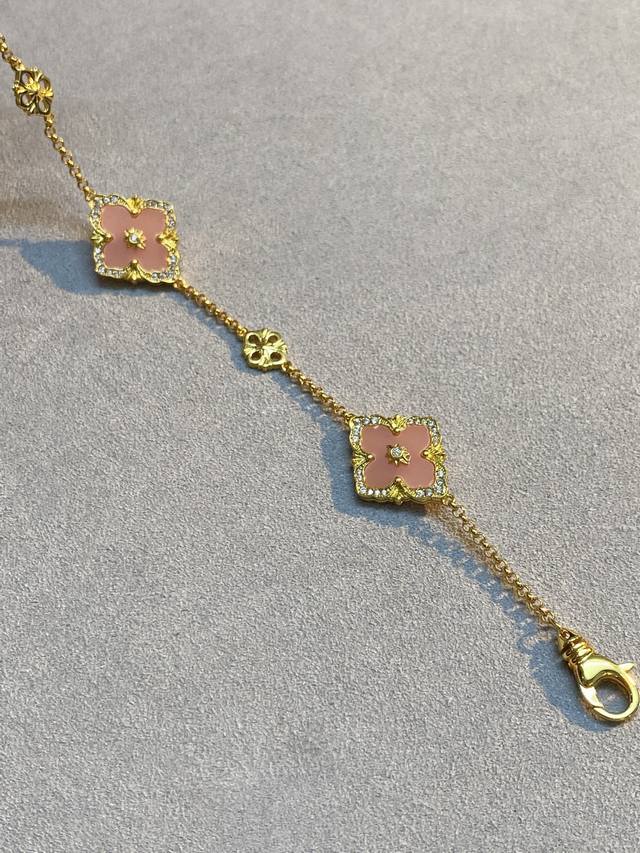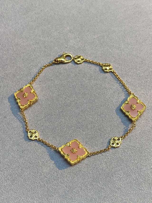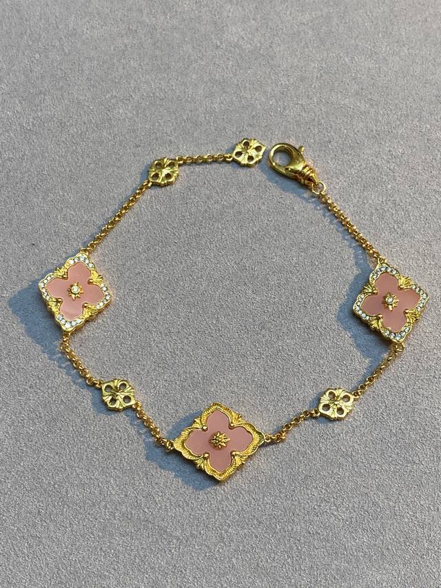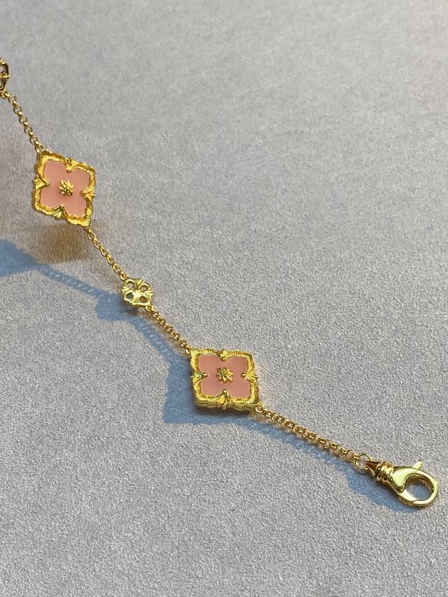 V Gold Material Matching Seiko Buccellati Pink Mother-of-Pearl Diamond Three-Flower Bracelet