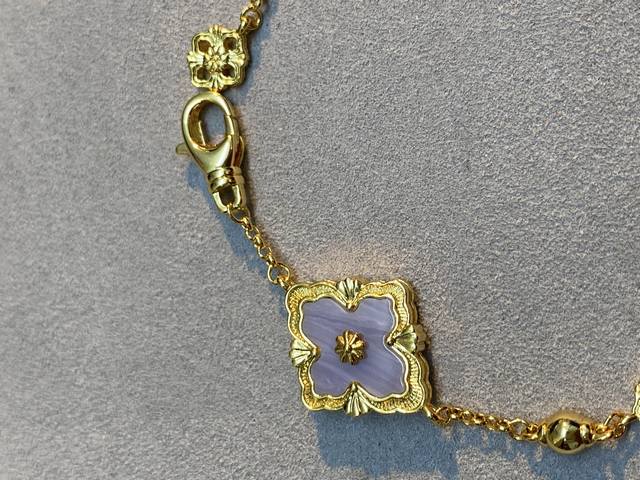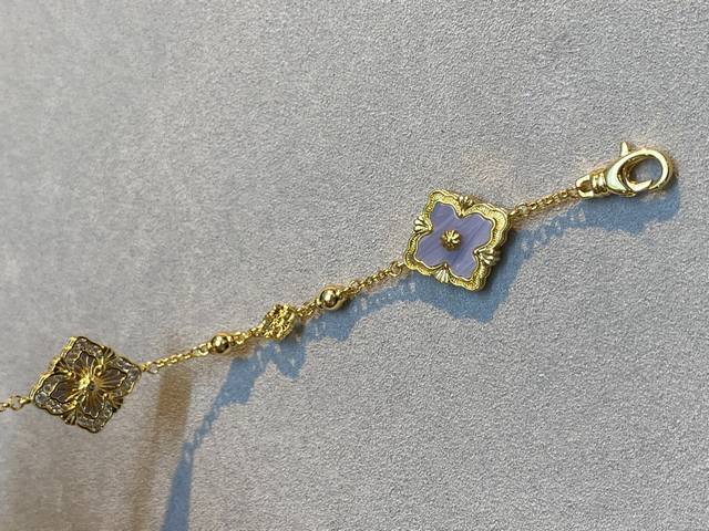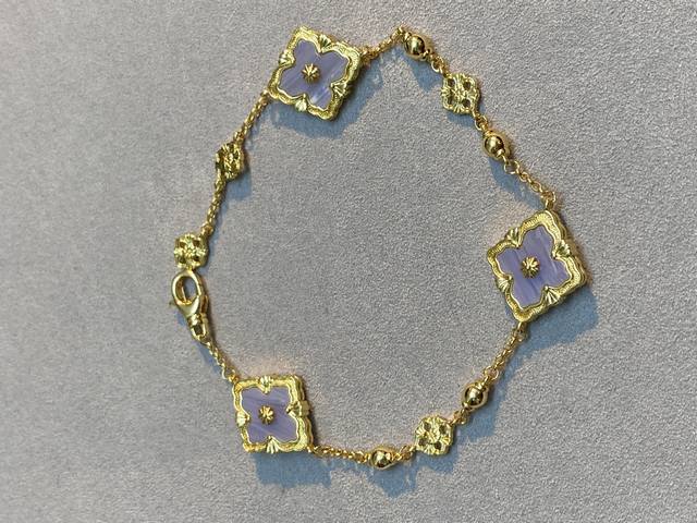 V Gold Material Seiko Buccellati Purple Chalcedony Opera House Three Flower Bracelet