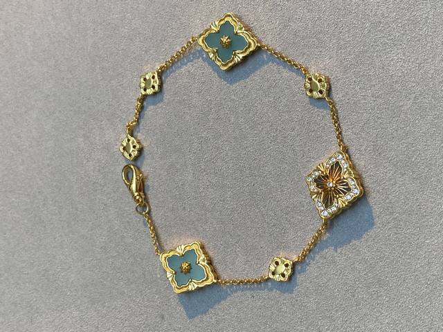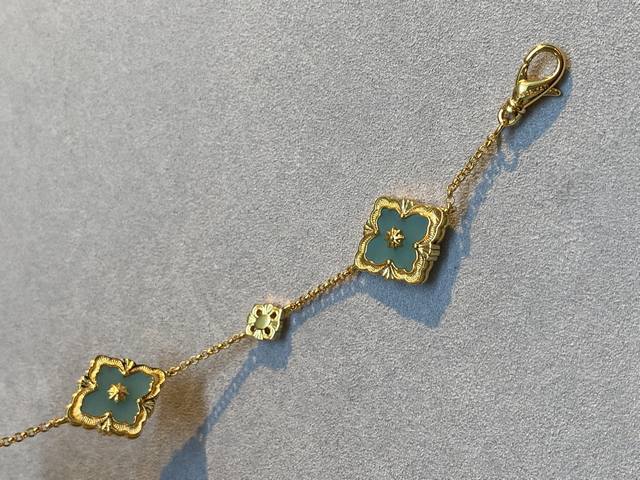 / V Gold Material Seiko Buccellati Turquoise Opera House Three Flower Bracelet