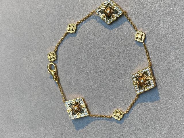 V Gold Material Seiko Buccellati Turquoise Opera House Three Flower Bracelet