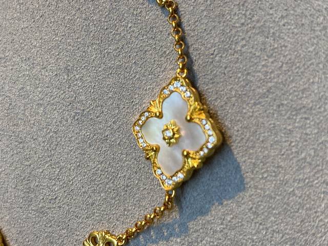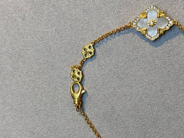 V gold-plated Vca high-end diamond-encrusted four-leaf clover necklace. This Cle