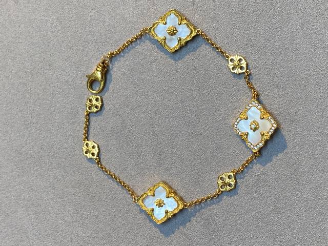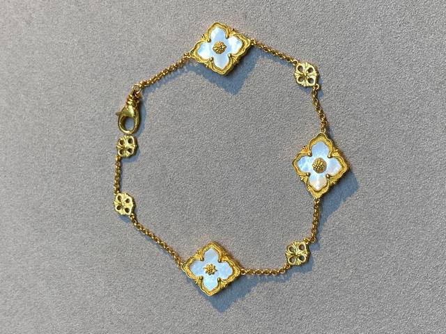 V Gold Material Seiko Buccellati White Mother-of-Pearl Diamond Three-Flower Bracelet