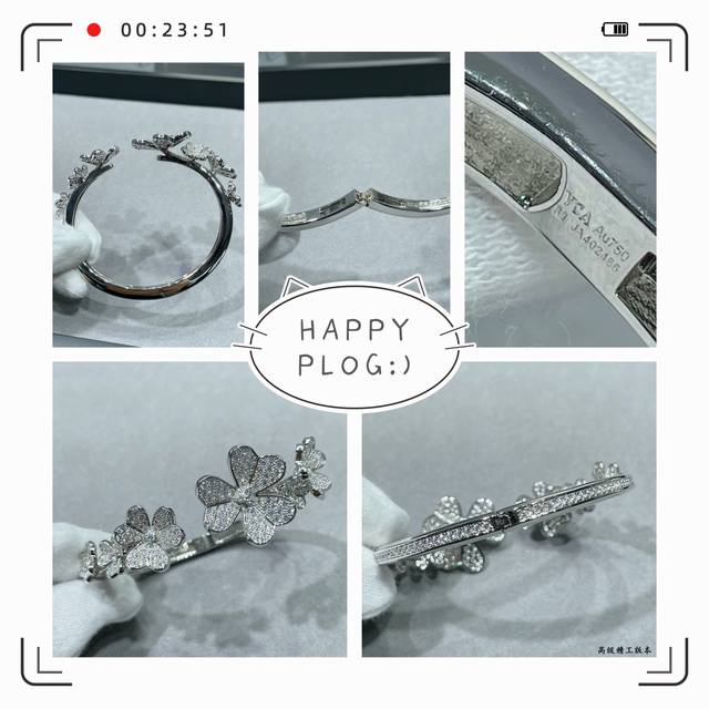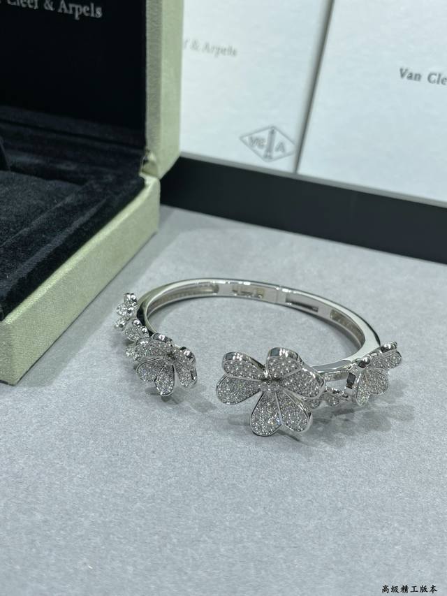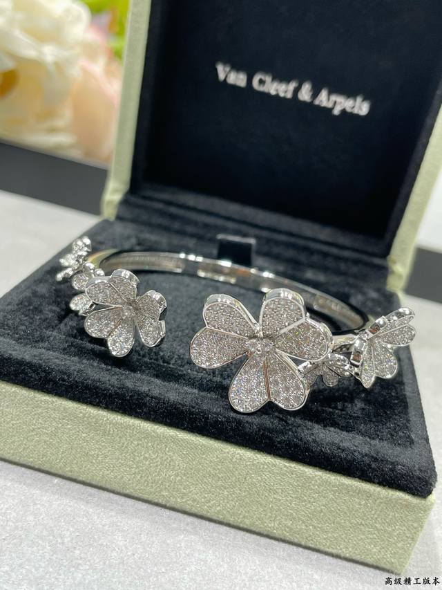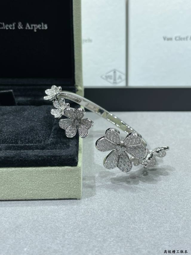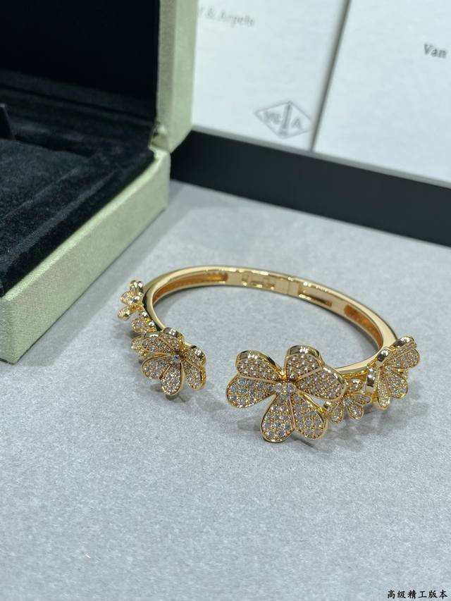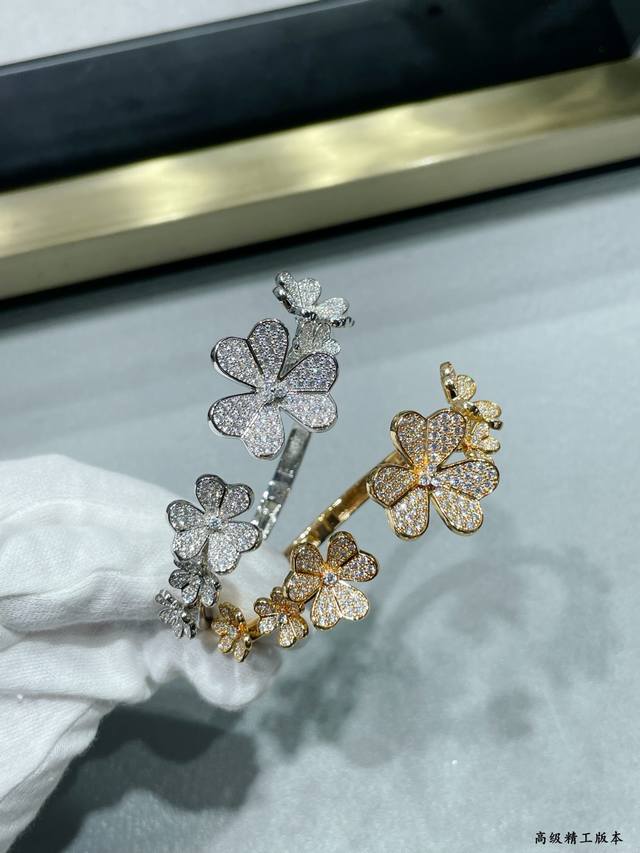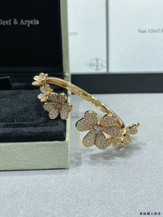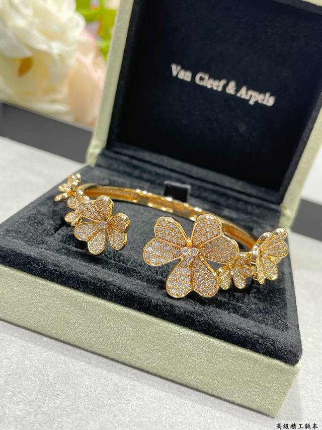 V gold material size 16 17 Vca full diamond 7 flower clover bracelet, breaking the classic four-leaf clover is particularly attractive, complementing the fair skin, especially versatile, suitable for any occasion, sister gathering, very face.