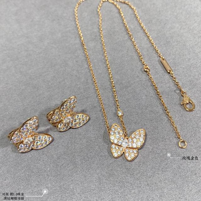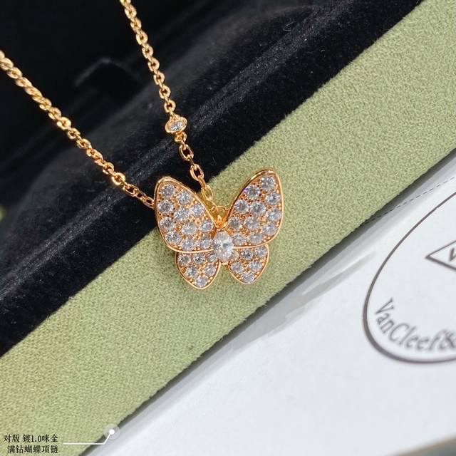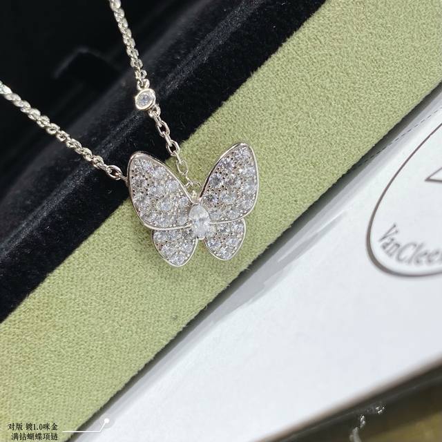 V gold material, Vca Cleef & Arpels high-end full diamond butterfly necklace. These are rare finds, especially the full diamond design, which is particularly charming, flattering to fair skin, and incredibly versatile. Suitable for any occasion, from girls' gatherings, it's sure to impress. (