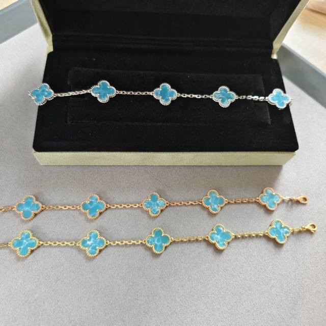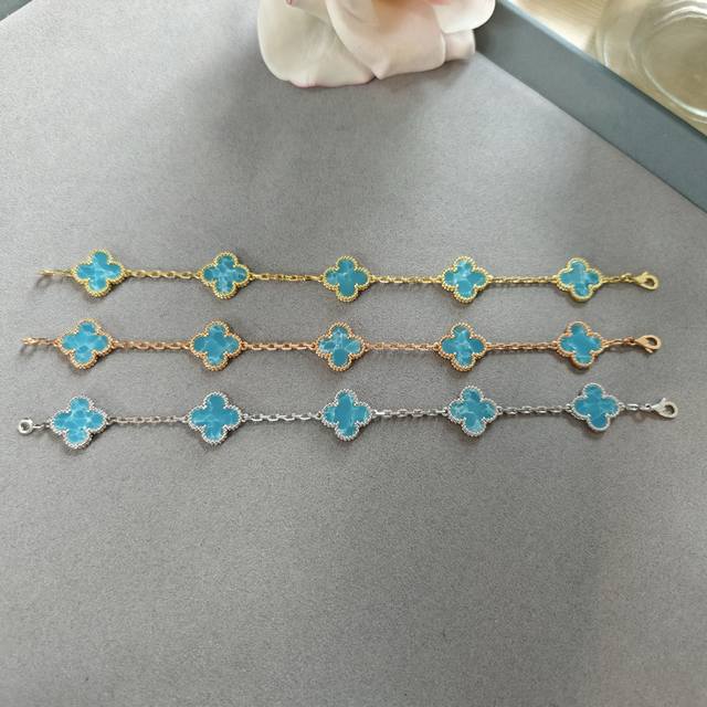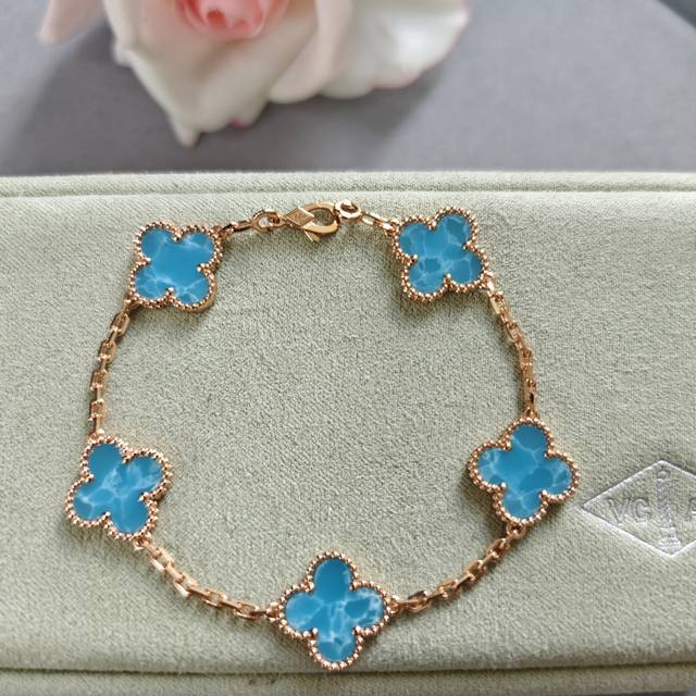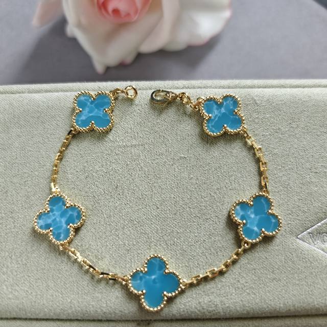 / V gold material Vca deep sea blue four-leaf clover five-flower bracelet