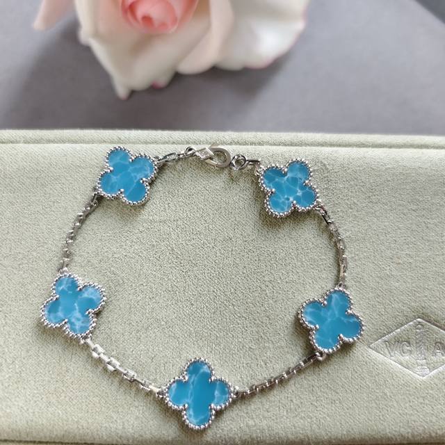 V gold material Vca deep sea blue four-leaf clover five-flower bracelet