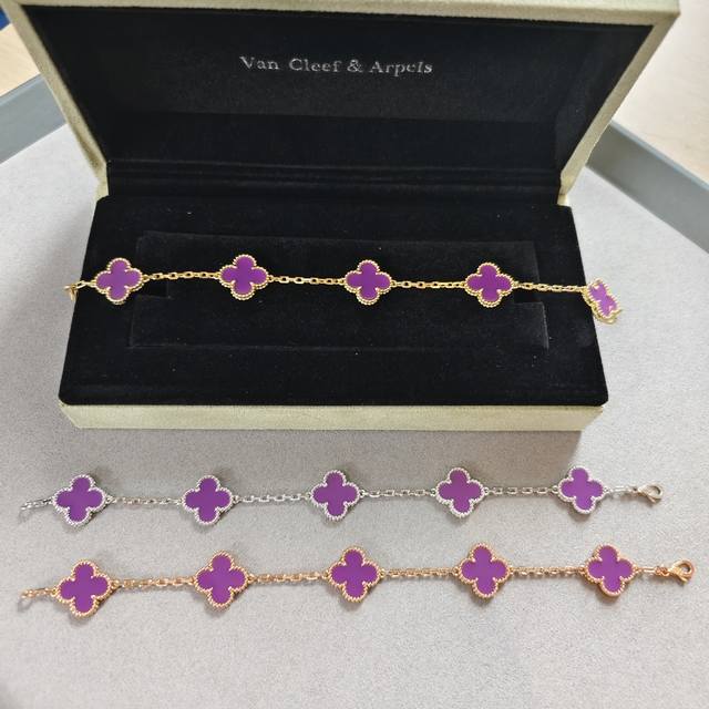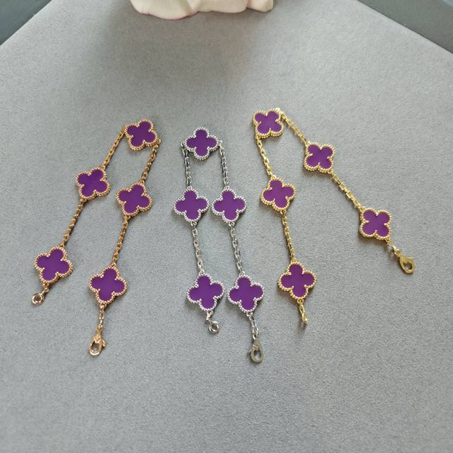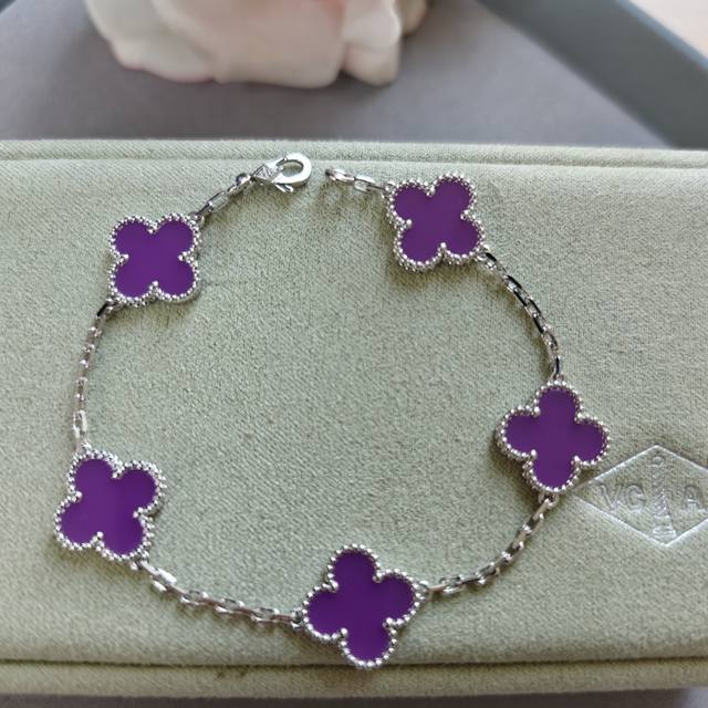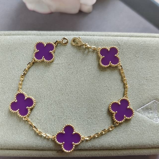 / V gold material Vca five-flower four-leaf clover violet bracelet