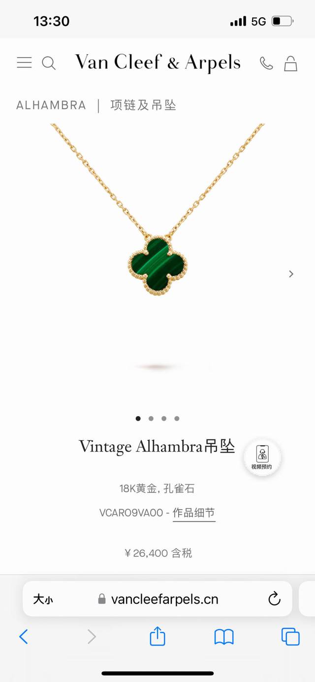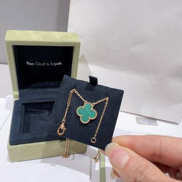V gold material Vca gold four-leaf clover single flower malachite necklace Ddd