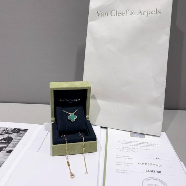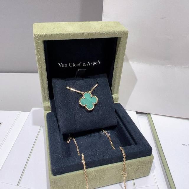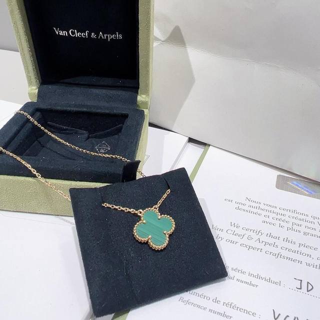/ V gold material Vca gold four-leaf clover single flower malachite necklace Ddd