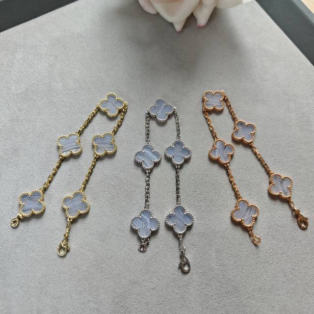 / V gold material Vca purple chalcedony four-leaf clover five-flower bracelet