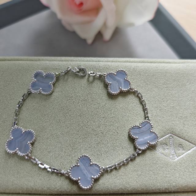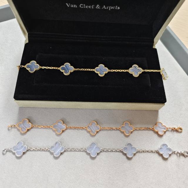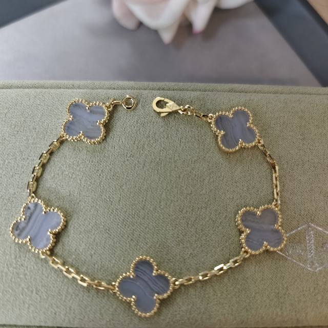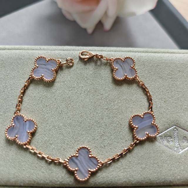 V gold material Vca purple chalcedony four-leaf clover five-flower bracelet