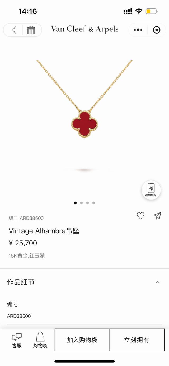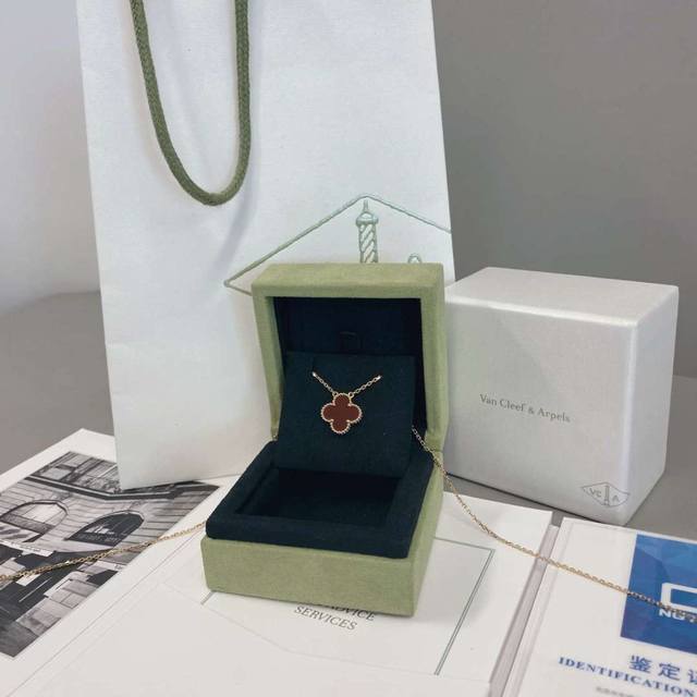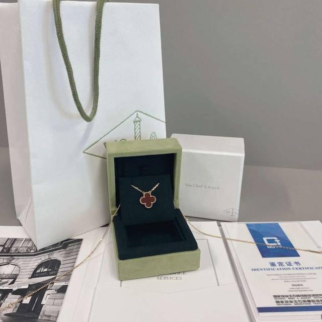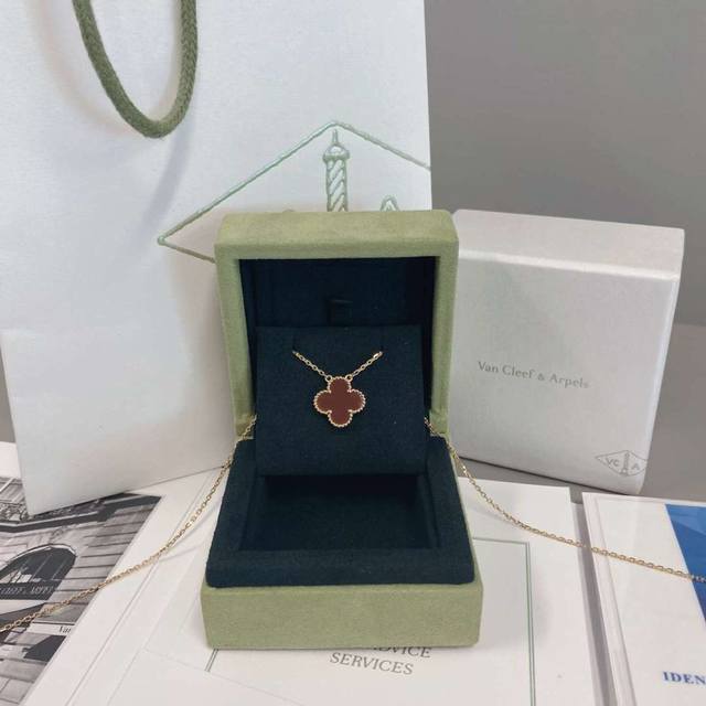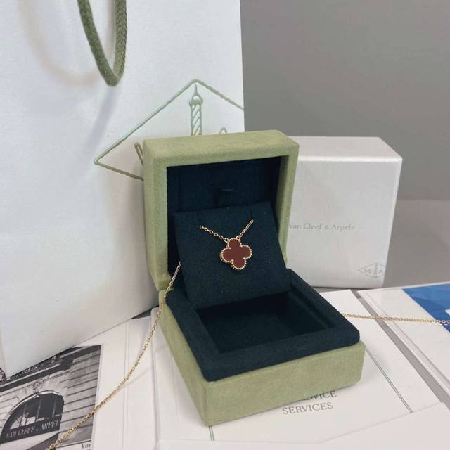 / V gold material Vca rose gold single flower carnelian four-leaf clover necklace