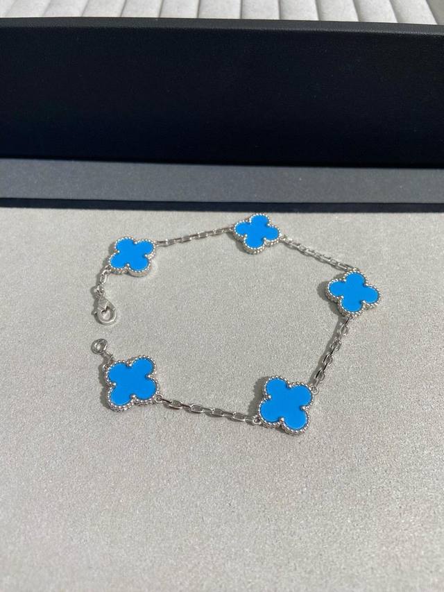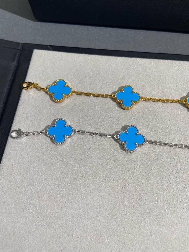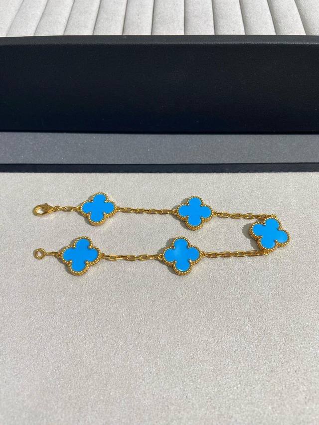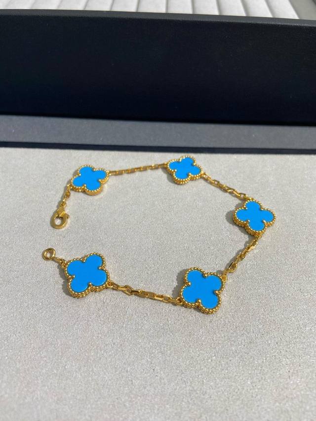 V gold material Vca turquoise four-leaf clover five-flower bracelet