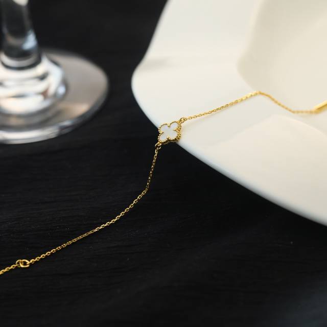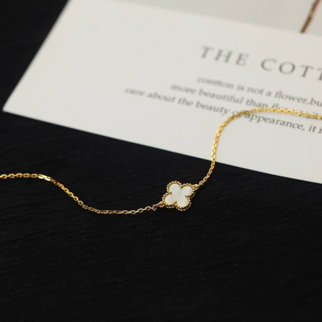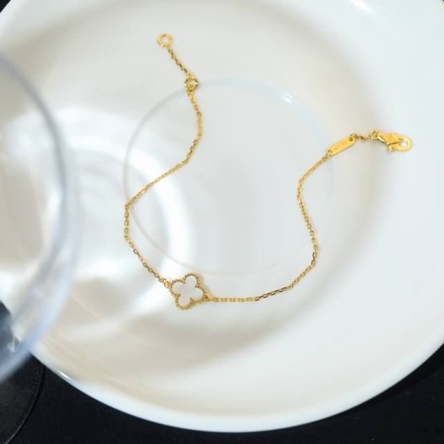 V Gold Mini Four-Leaf Clover White Mother-of-Pearl Bracelet