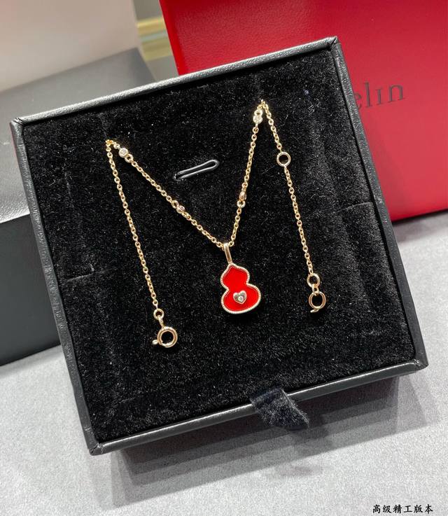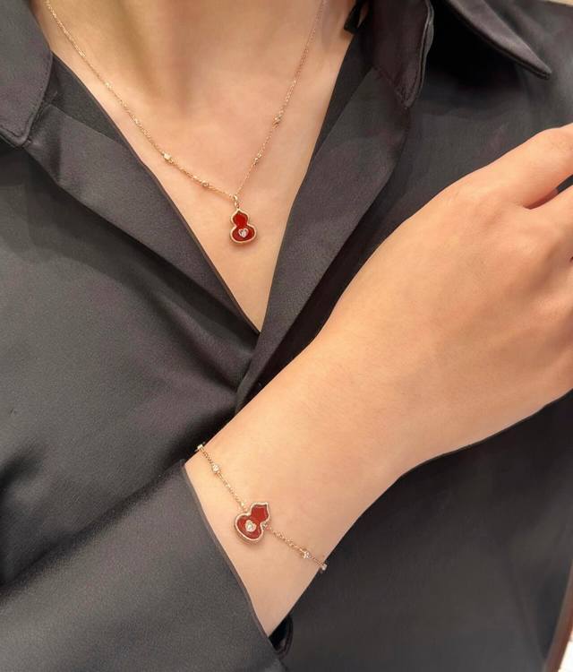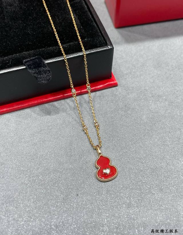 V Gold Qeelin Qilin Red Gourd Heart-Shaped Necklace. Simple lines depict the graceful form of Wulu. Qeelin X Rebecca Exclusive Limited Edition Wulu, a must-have for your zodiac year.