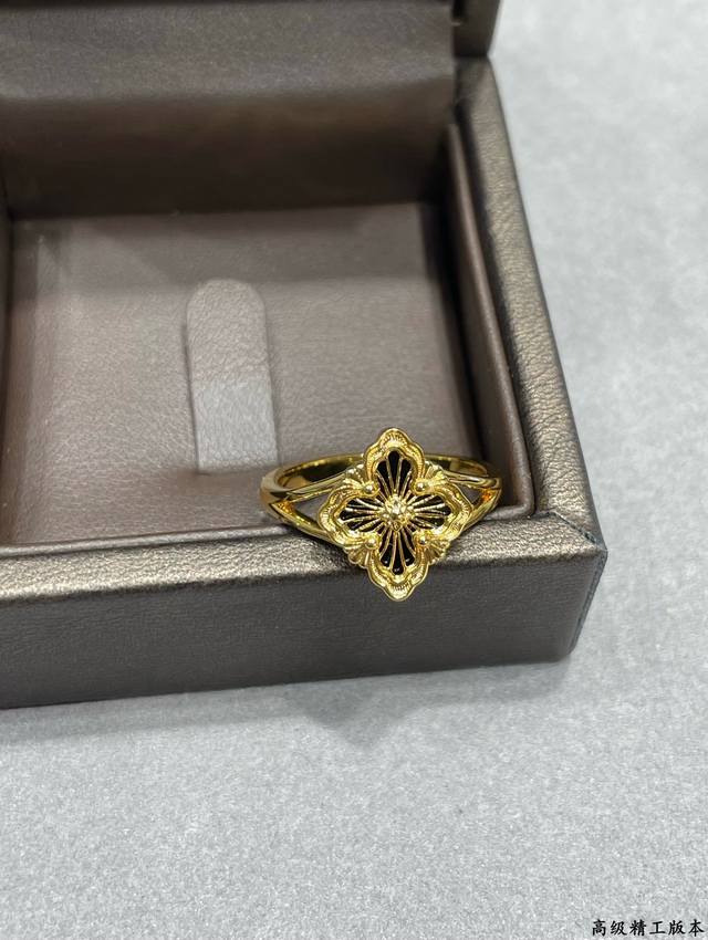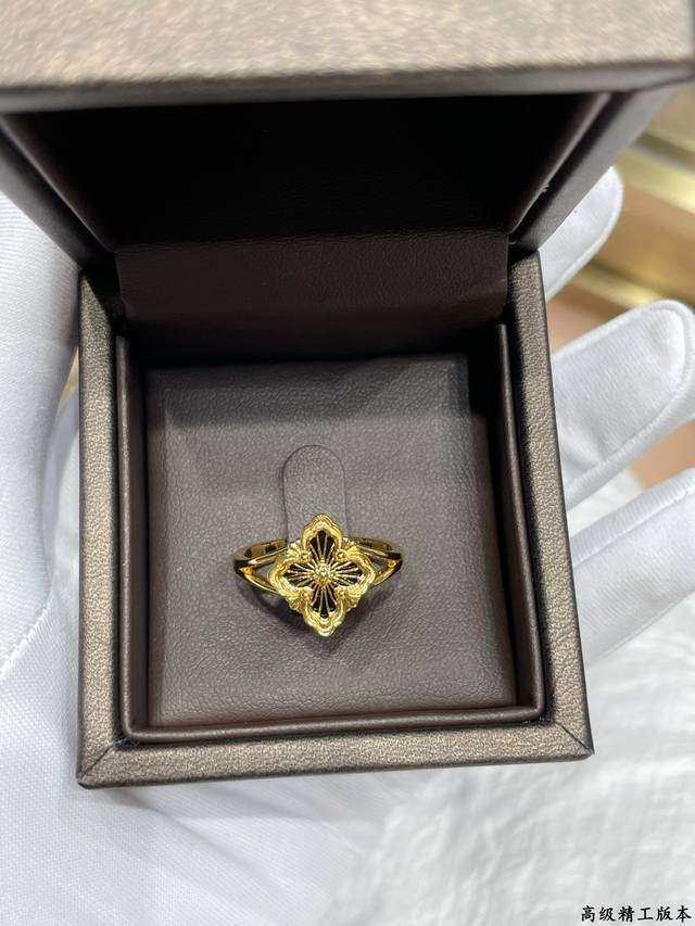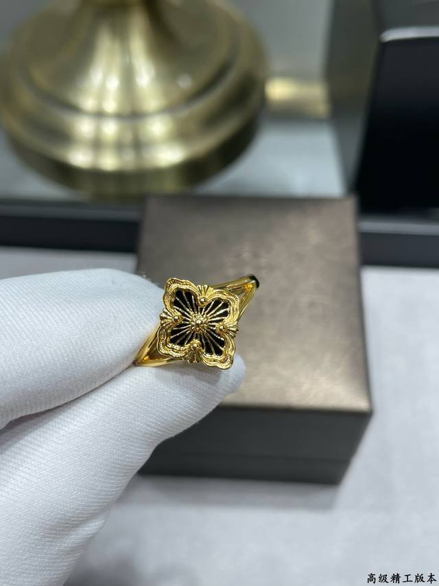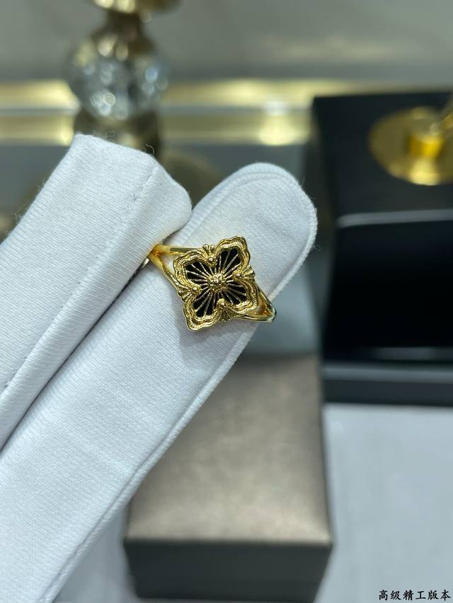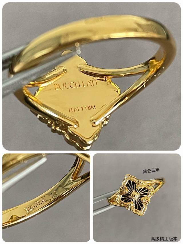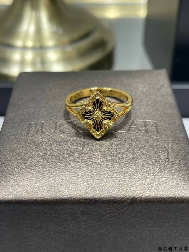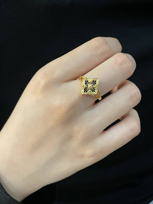 V Gold Size 5678 Buccellati Opera House Series Ring Black Enamel Retro Palace Style Four-Leaf Clover, so Italian style, the whole piece is exquisite and gorgeous and adds a sense of art. It uses Rigato parallel grain carving technology to create a unique satin craftsmanship. The geometric diamond shape exudes a sense of luxury from the inside out.