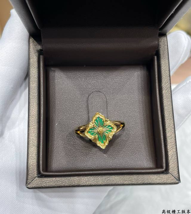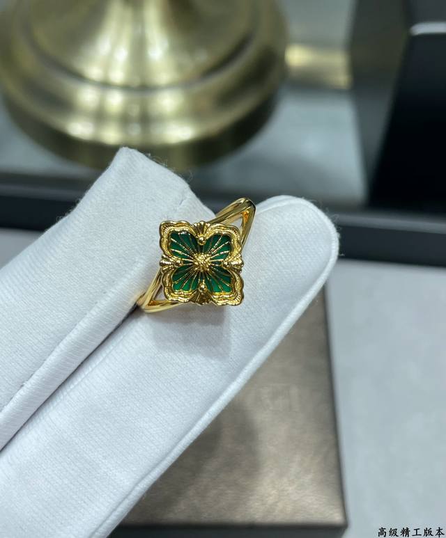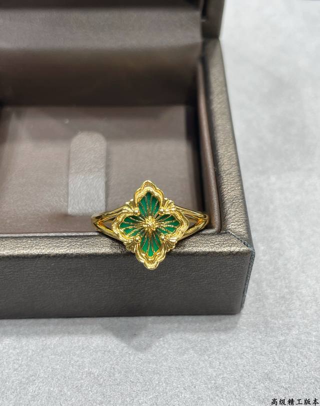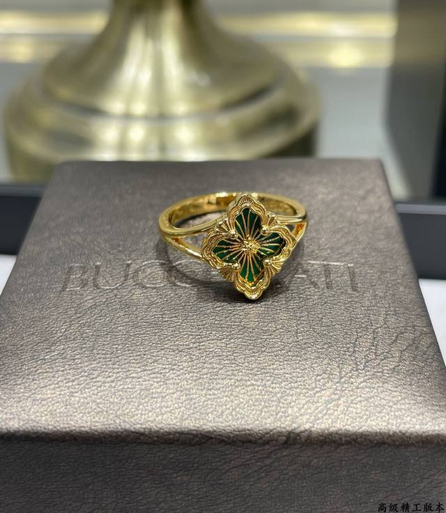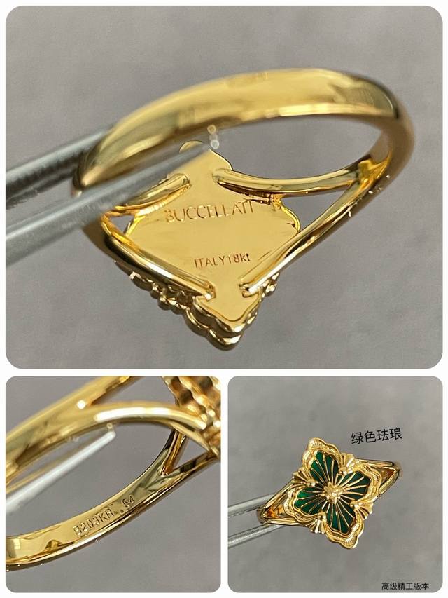 V Gold Size 5678 Buccellati Opera House Series Ring Green Enamel Retro Palace Style Four-Leaf Clover, so Italian style, the whole piece is exquisite and gorgeous and adds a sense of art. It uses Rigato parallel grain carving technology to create a unique satin craftsmanship. The geometric diamond shape exudes a sense of luxury from the inside out.