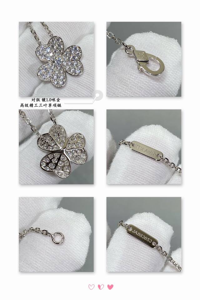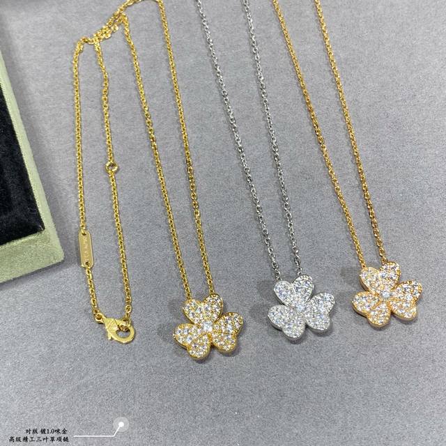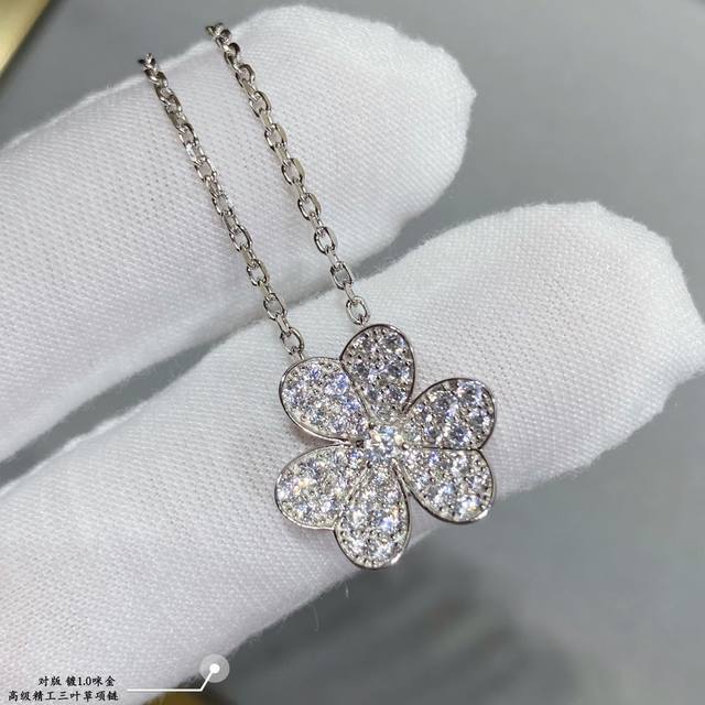 V gold Vca clover necklace with Cnc clasp breaks away from the classic four-leaf clover necklace with its full diamond design, making it particularly charming. It complements fair skin, is very versatile, and suitable for any occasion, including gatherings with friends, ensuring you'll look your best.