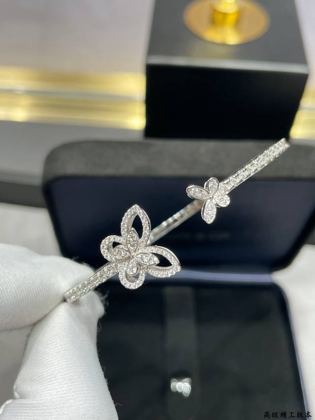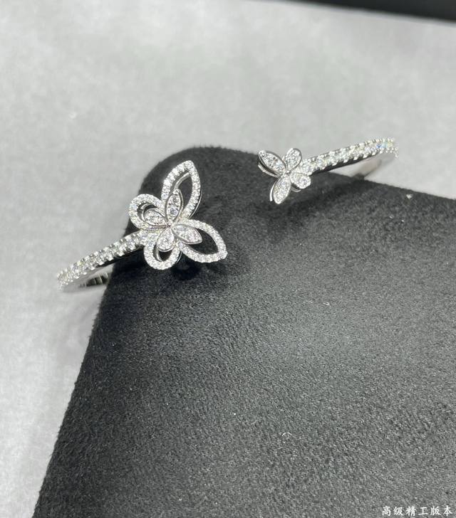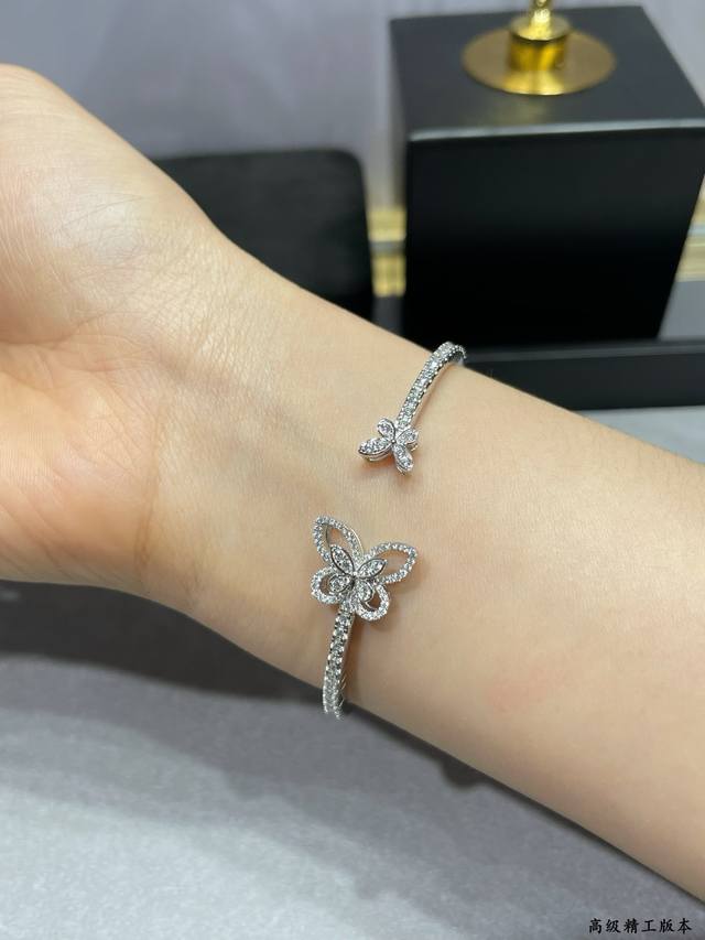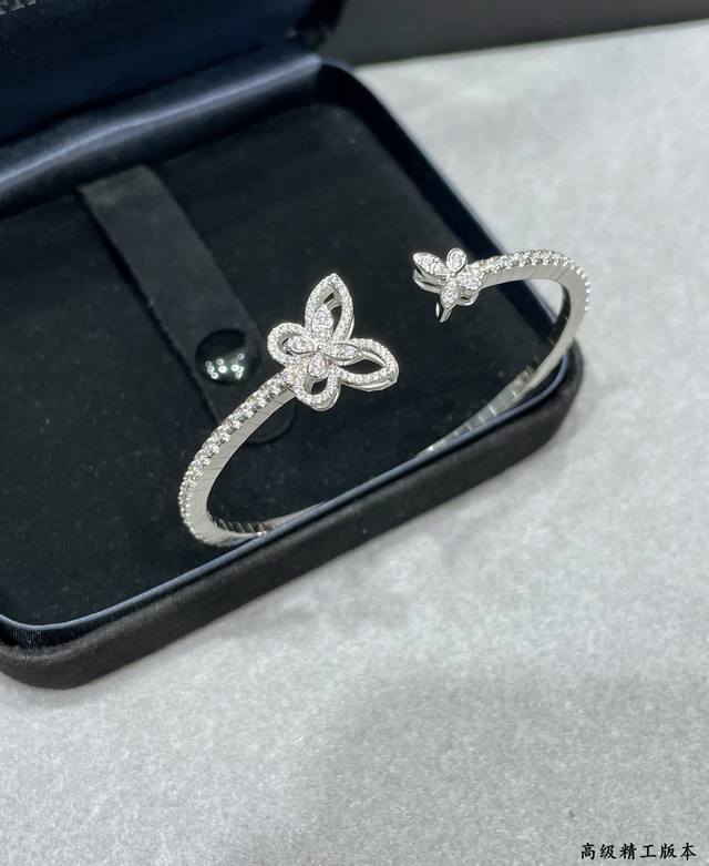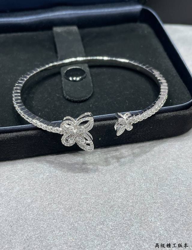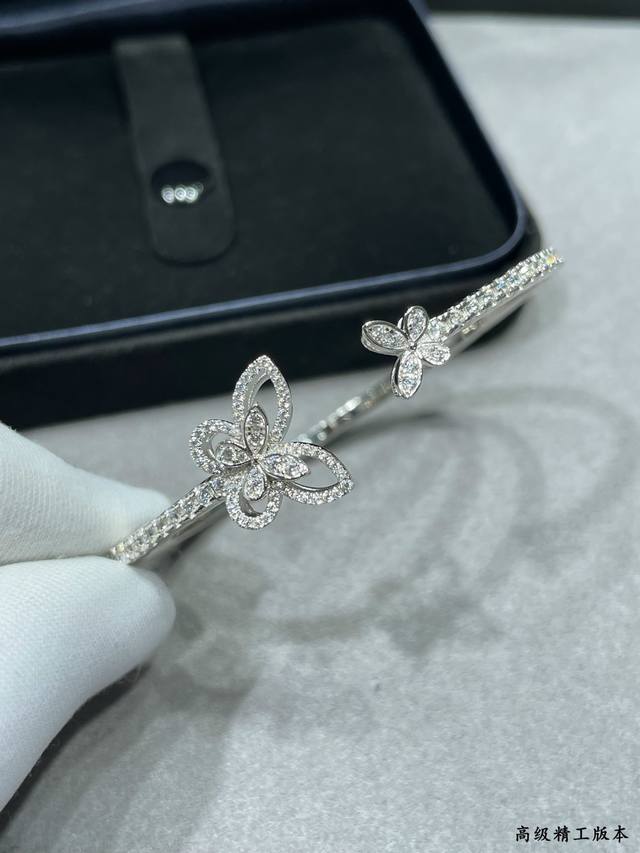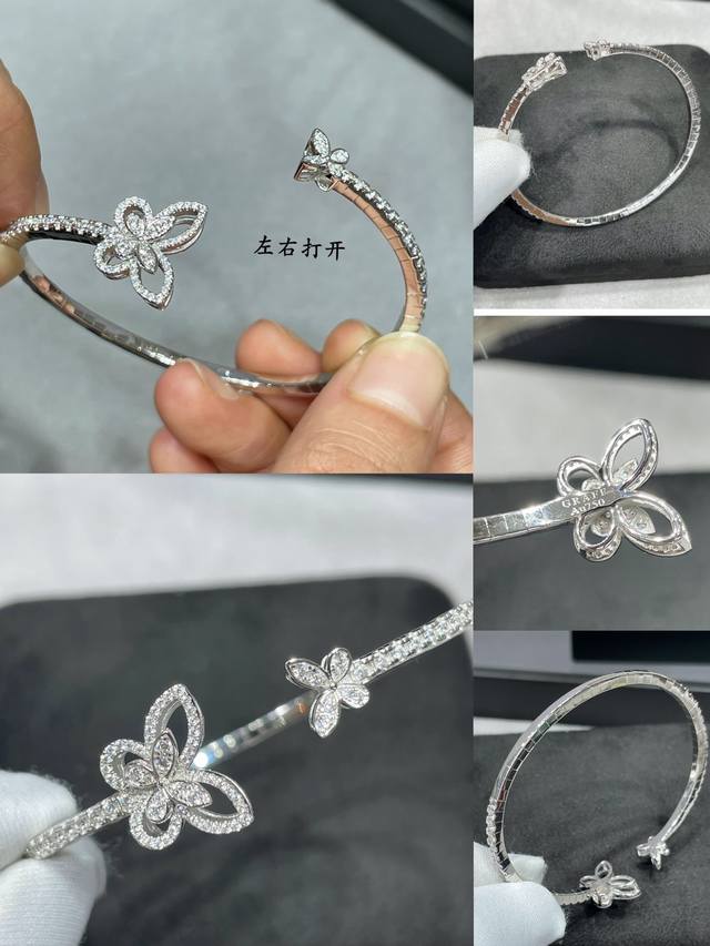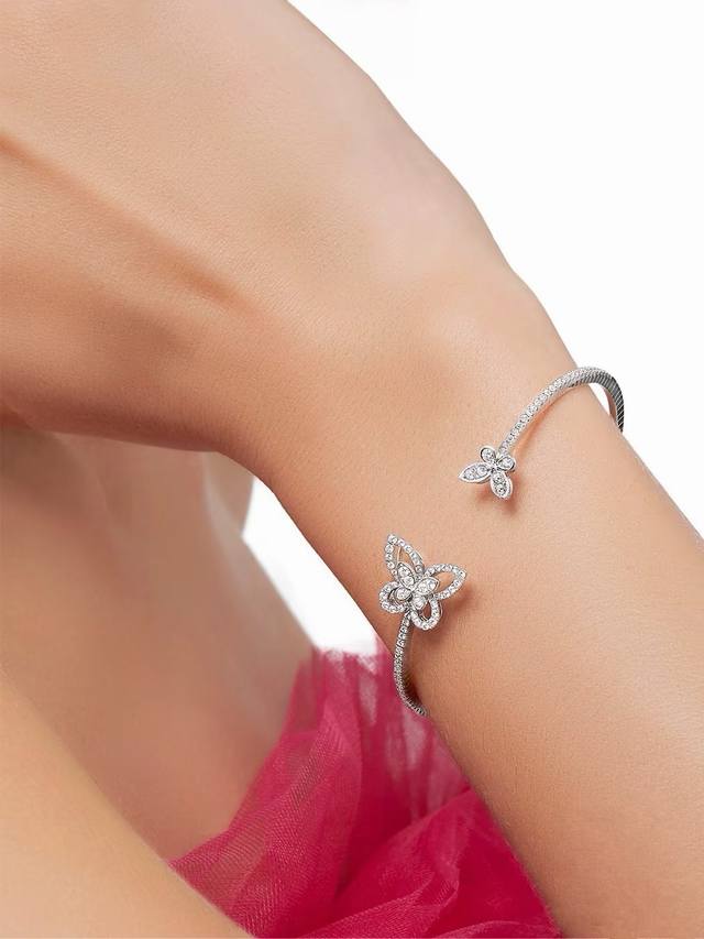 V Graff's new version of the butterfly open bracelet in gold. This high-end jewelry piece features a flexible bow that wraps around the finger, sparkles at the neck, or forms a perfect arc around the ear, boldly interpreting the style of modern high-end jewelry.
