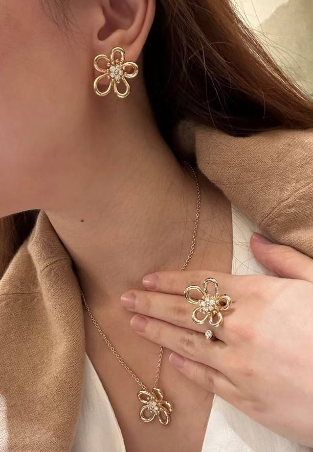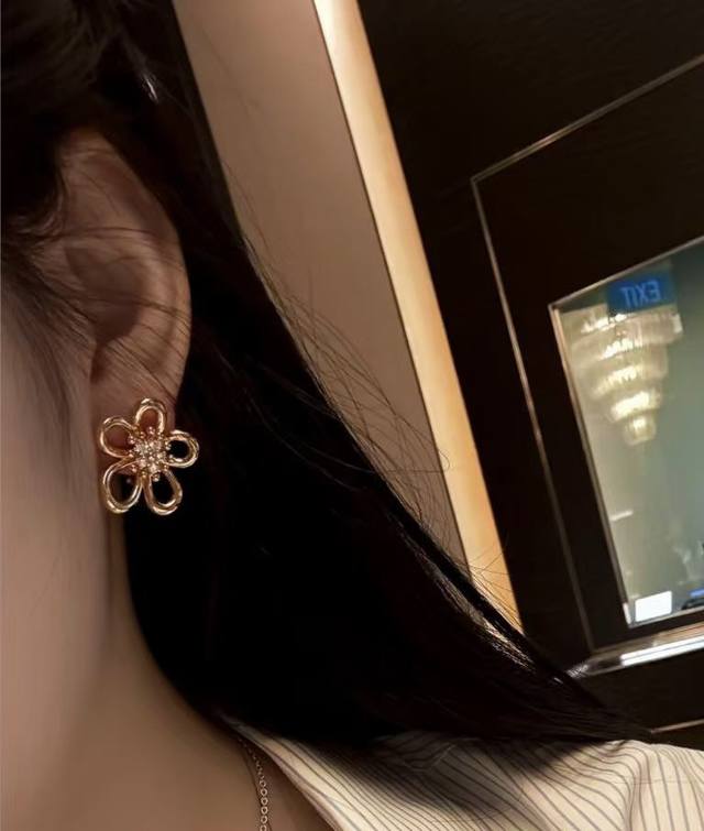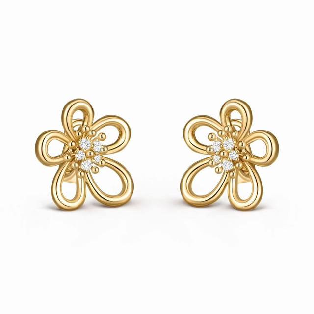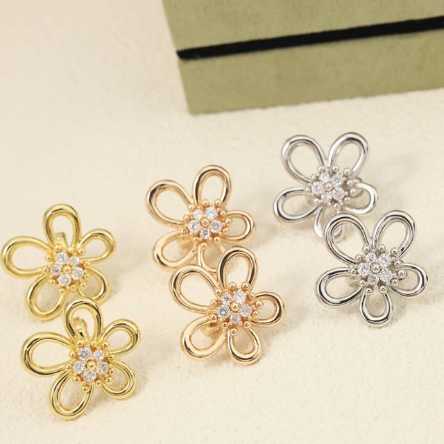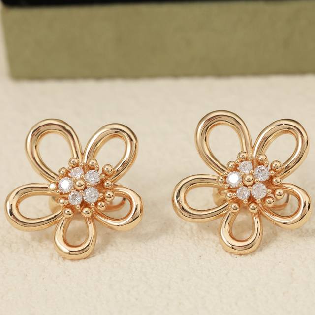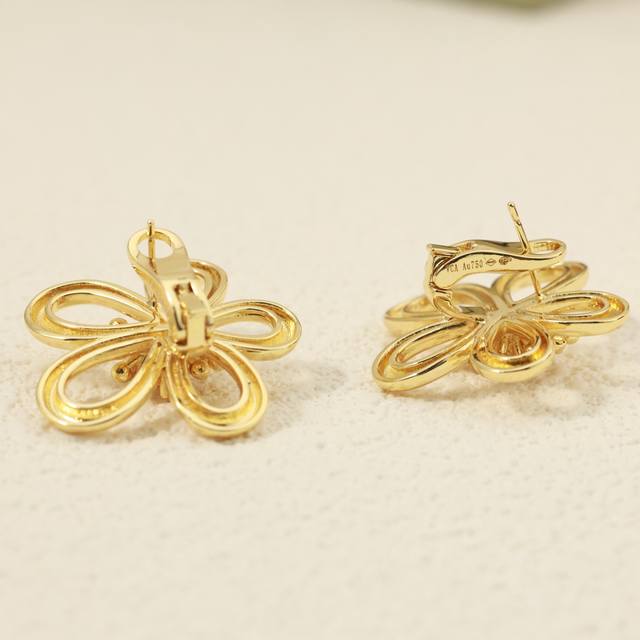 Van Cleef & Arpels Flower Stud Earrings, Sterling Silver Posts + Original Logo Plated with 18K Gold, Fresh and Elegant Style. (Vca Van Cleef & Arpels Stud Earrings