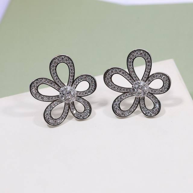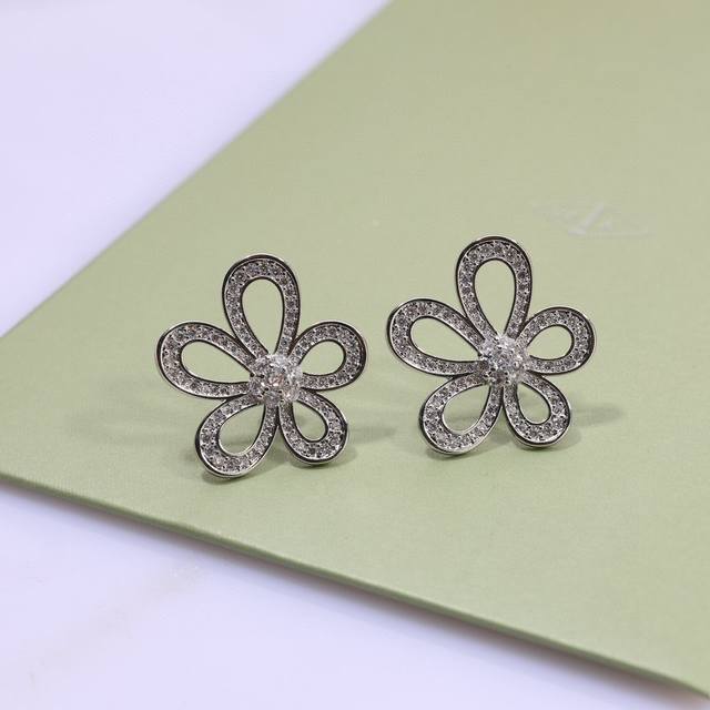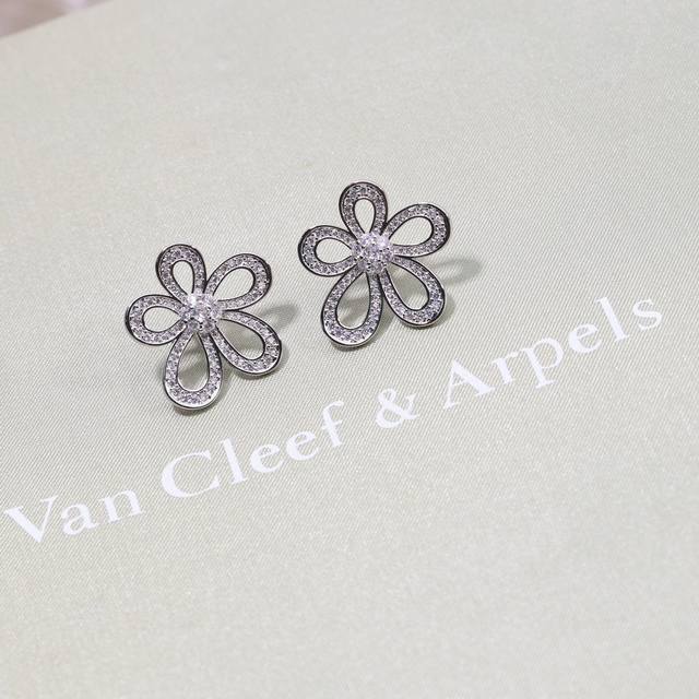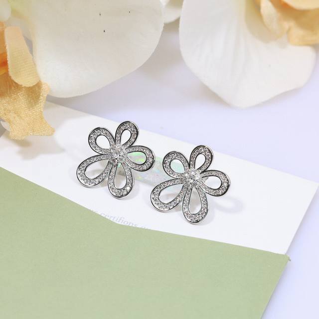 Van Cleef & Arpels Flower Stud Earrings with Clover Sterling Silver Posts + Original Logo Plated with 18K Gold. A fresh and elegant look with blooming flowers. (Vca Van Cleef & Arpels earrings,