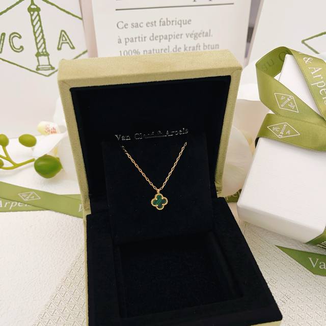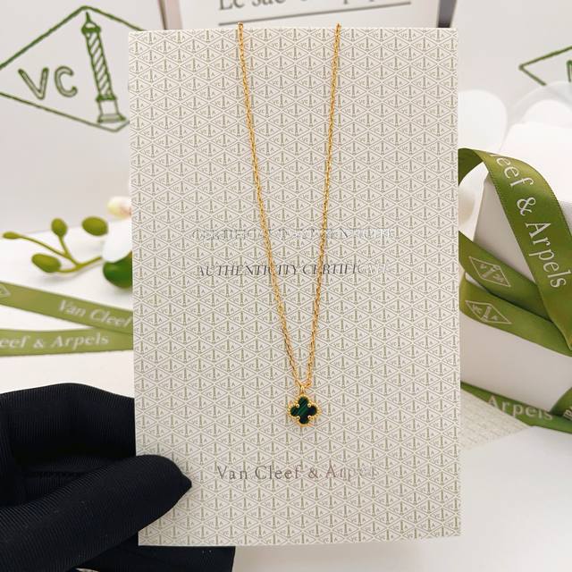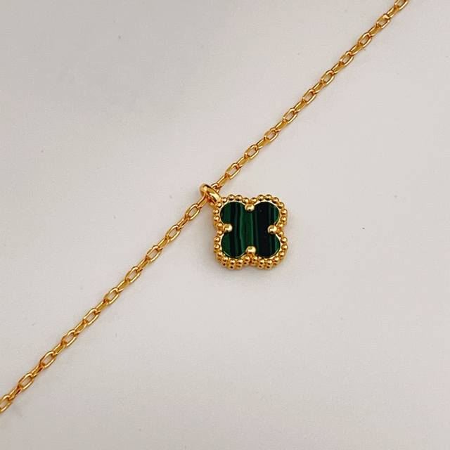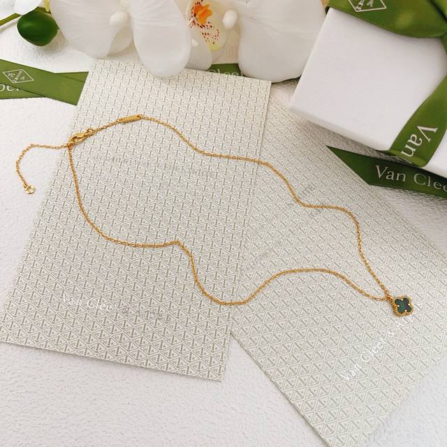 Vancleef*Arpel* Latest gold mini green mother-of-pearl necklace, made of the same brass material as the original, very photogenic, with a unique design, definitely worth buying from the high-end handcrafted series DDD