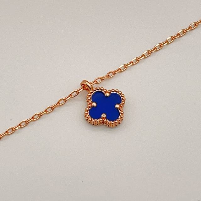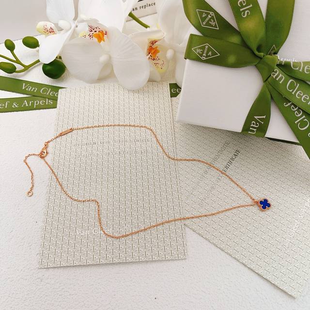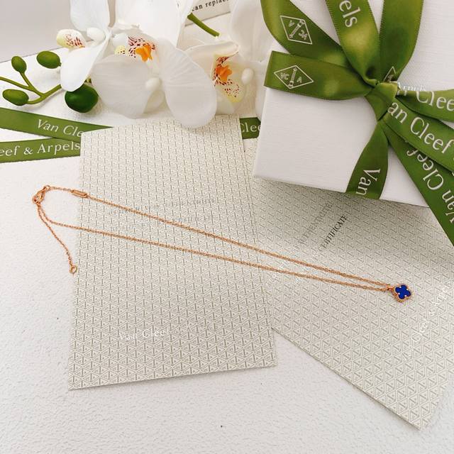 Vancleef*Arpel* Latest Rose Gold Mini Blue Mother-of-Pearl Necklace, made of the same genuine brass material as the original, very photogenic, with a unique design, definitely worth buying from the M