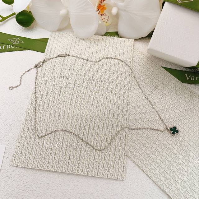 Vancleef*Arpel* Latest Silver Mini Green Mother-of-Pearl Necklace, made of the same brass material as the original, very photogenic, with a unique design, definitely worth buying from the high-end handcrafted series DDD