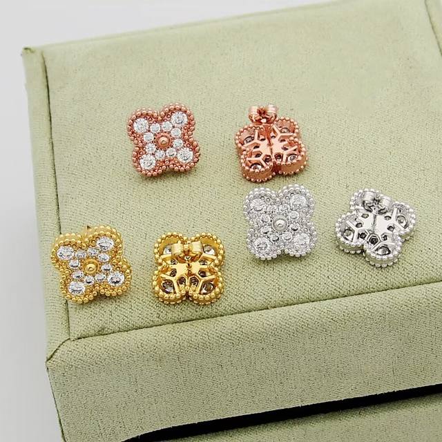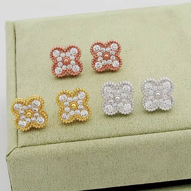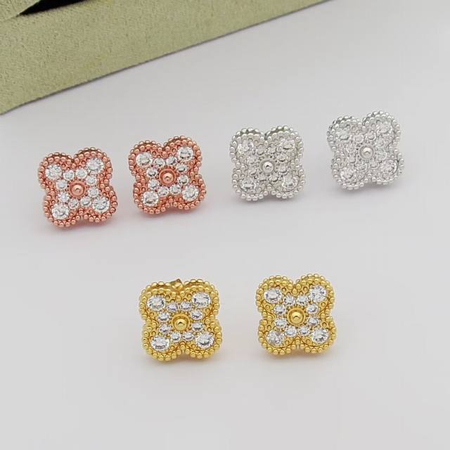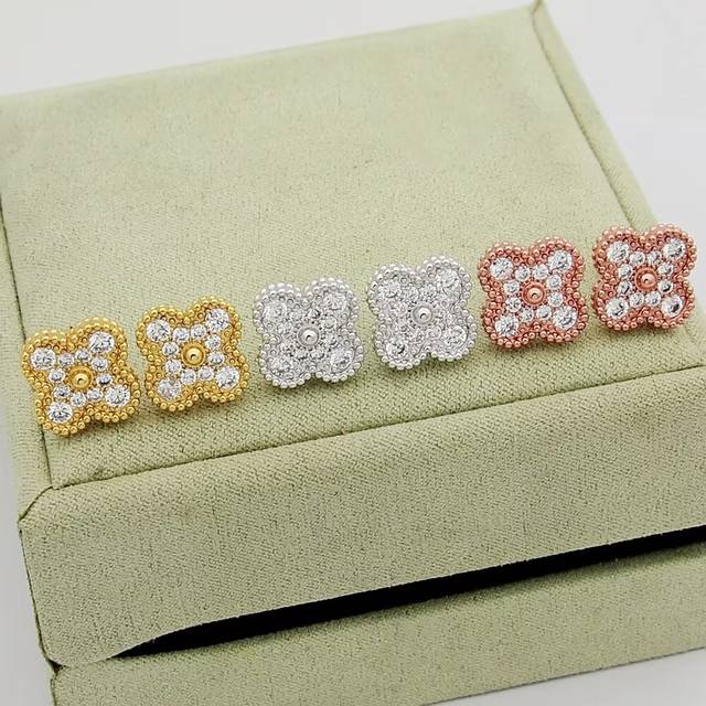 / Vca four-leaf clover earrings, single flower and full diamond earrings,