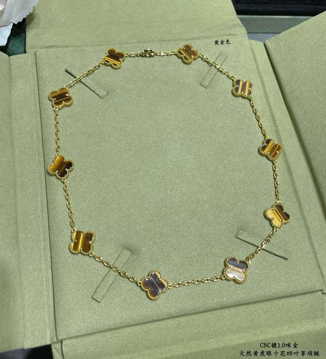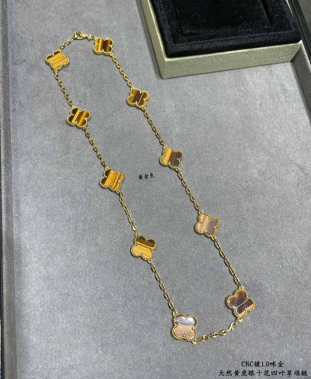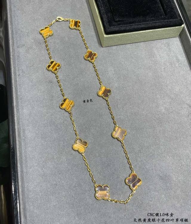 Vca Premium Yellow Tiger Eye Four-Leaf Clover Necklace. This Cleef & Arpels four-leaf clover series features a dynamic design with smooth lines, making it easy to wear. It showcases endless styling possibilities, bringing a rich and diverse style to every woman's life.