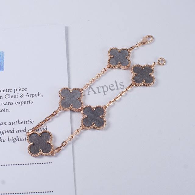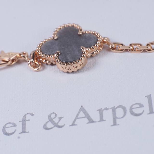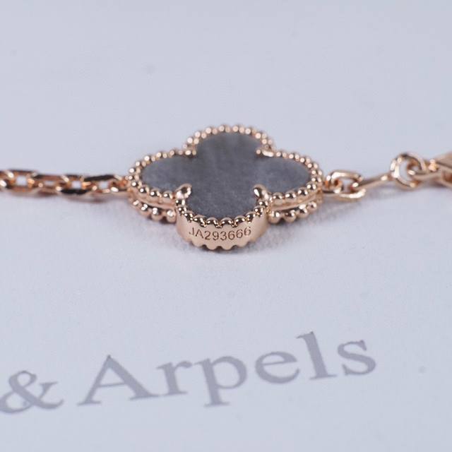 's first feature is that each four-leaf clover bead and natural stone accessory has no excess hardware at the connection point. Many low-quality versions on the market have extra hardware, making it look like a line, and some even have the claws completely detached from the bead. These claim to be from OEM factories or original surplus stock, but don't be fooled! This is simply a scam to those who don't know better! Ultimately, this is due to the craftsman's poor skills, insufficient technique, and lack of time investment, resulting in inferior quality. Second, the hardware between the side beads has a concave shape and is polished very evenly. The width and thickness of the hardware are just right, and the bead is very three-dimensional. Third, and most importantly, Z has an anti-counterfeiting steel stamp! You heard right, the V also has a steel stamp, and it's incredibly difficult